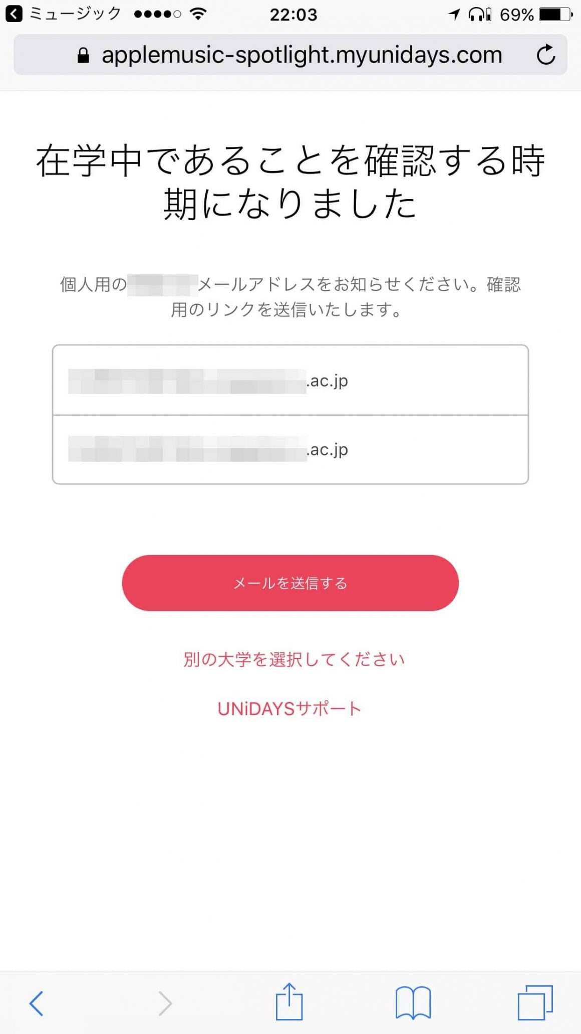 登録の際には「UNiDAYS」というサービスを使って就学状況が調査されますが、メールで認証するだけなので、登録はとっても簡単です。