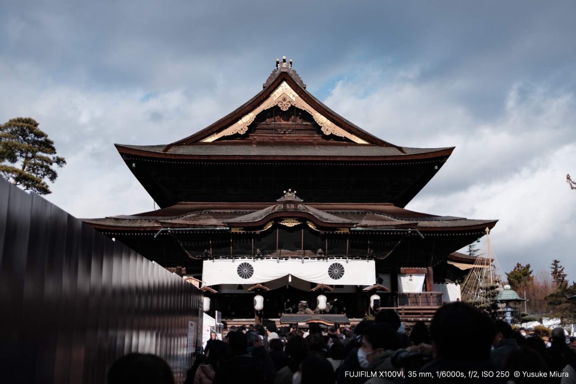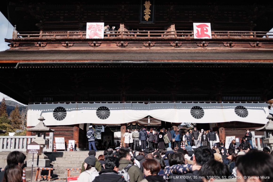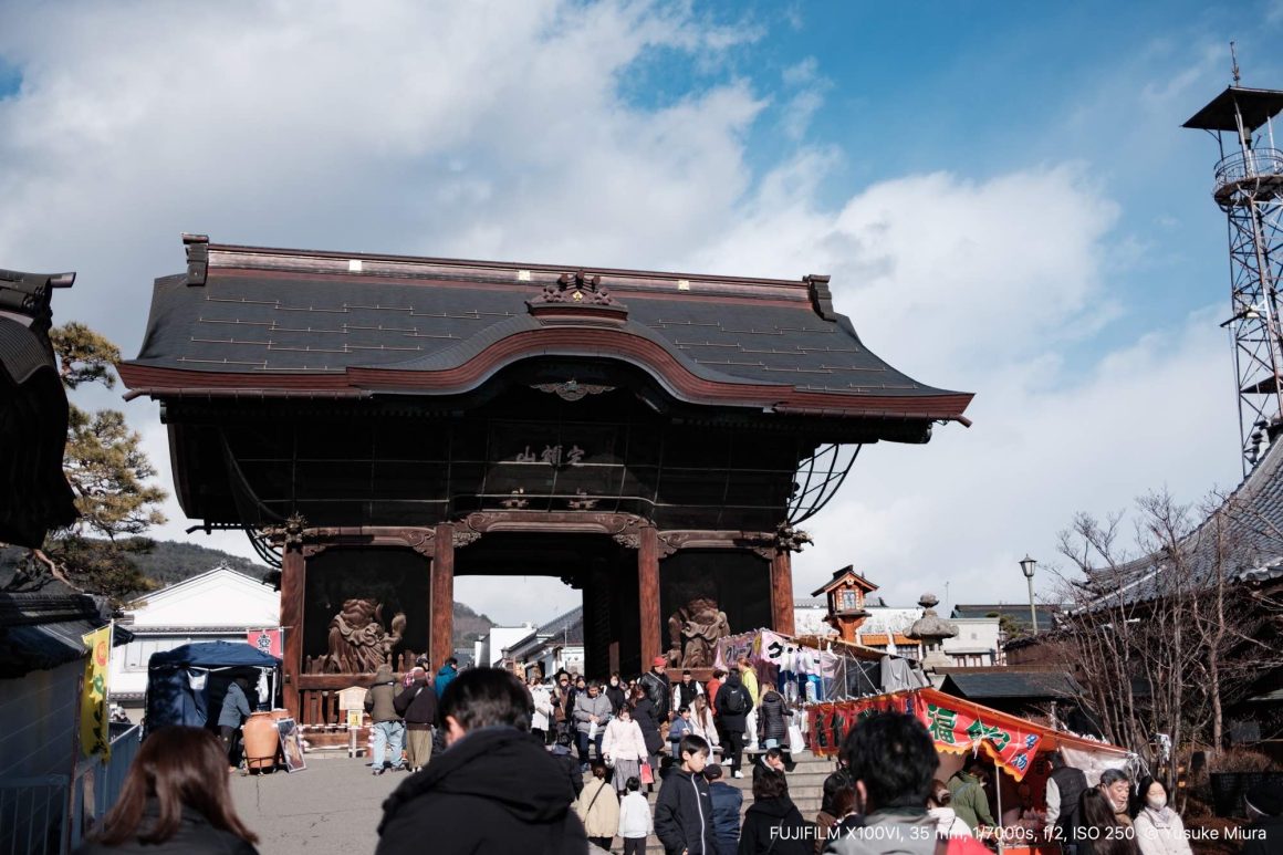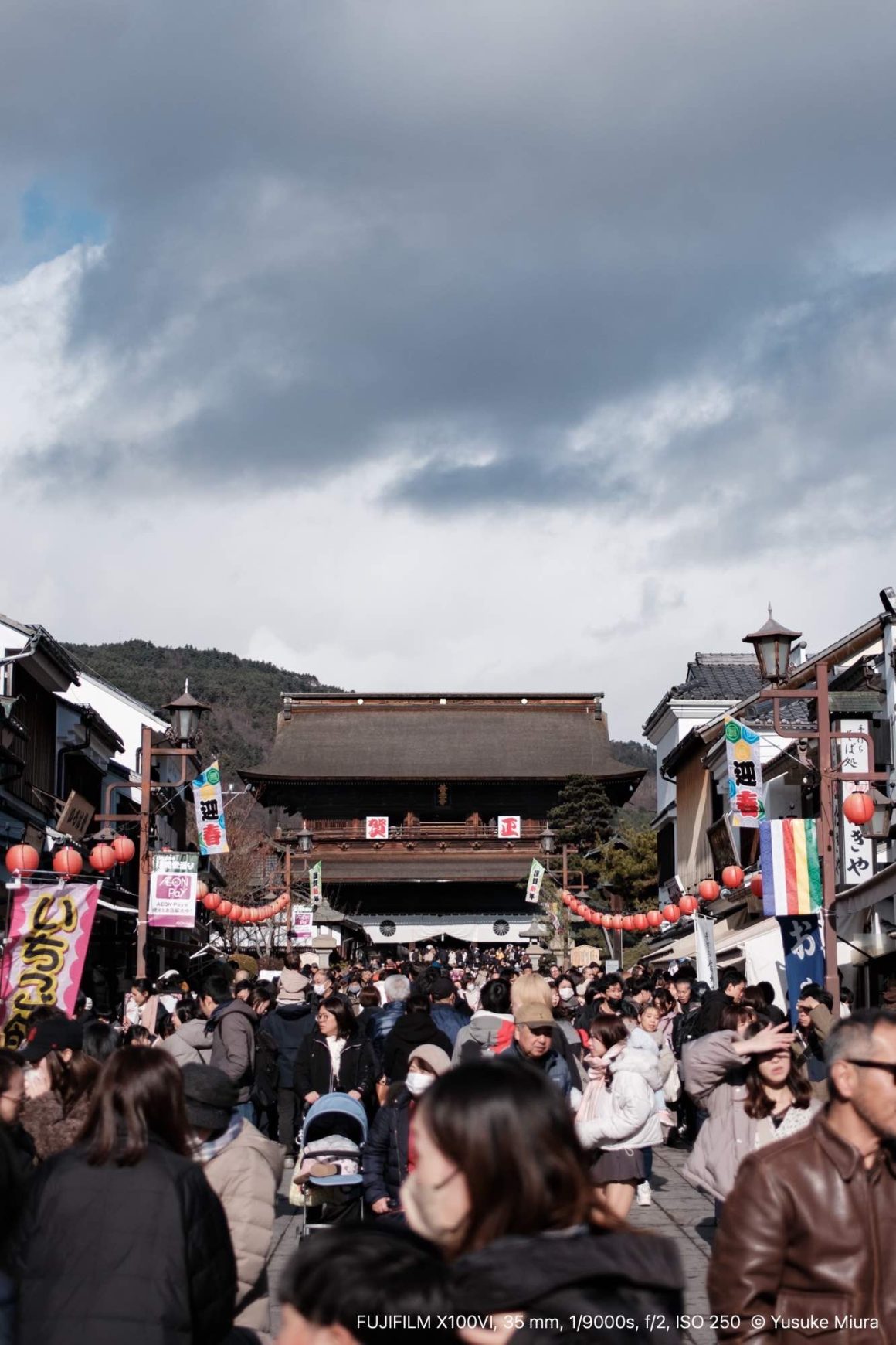 さて、お蕎麦を食べてからは善光寺に向かいます。既に善光寺表参道の入口にいたので、少し上がるだけで到着。しかし、三が日です。初詣の人々でごった返しており、見渡すほどの人の波。