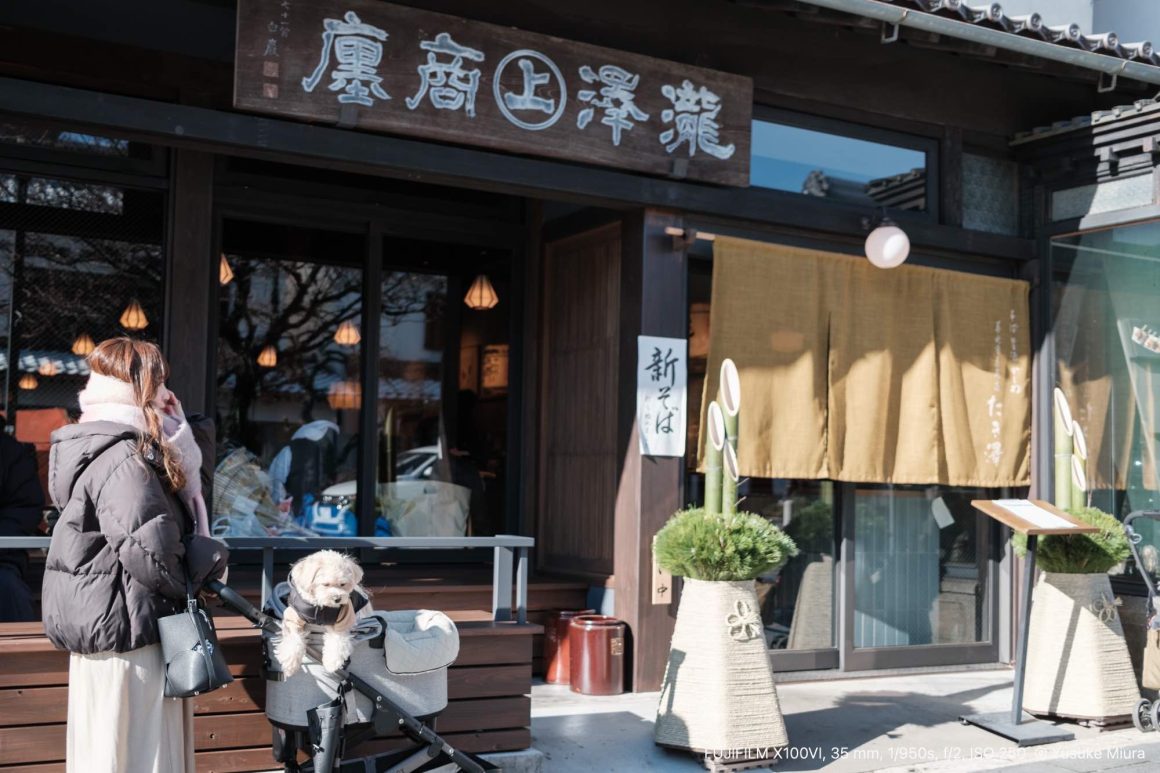 2日目のお昼は犬を連れてお蕎麦屋さんへ。善光寺にほど近い「たき澤」さんです。昨年の夏にも訪れたお蕎麦屋さんで、屋内の座席に犬と一緒に入ることができます。テラスじゃなくてありがたい…!