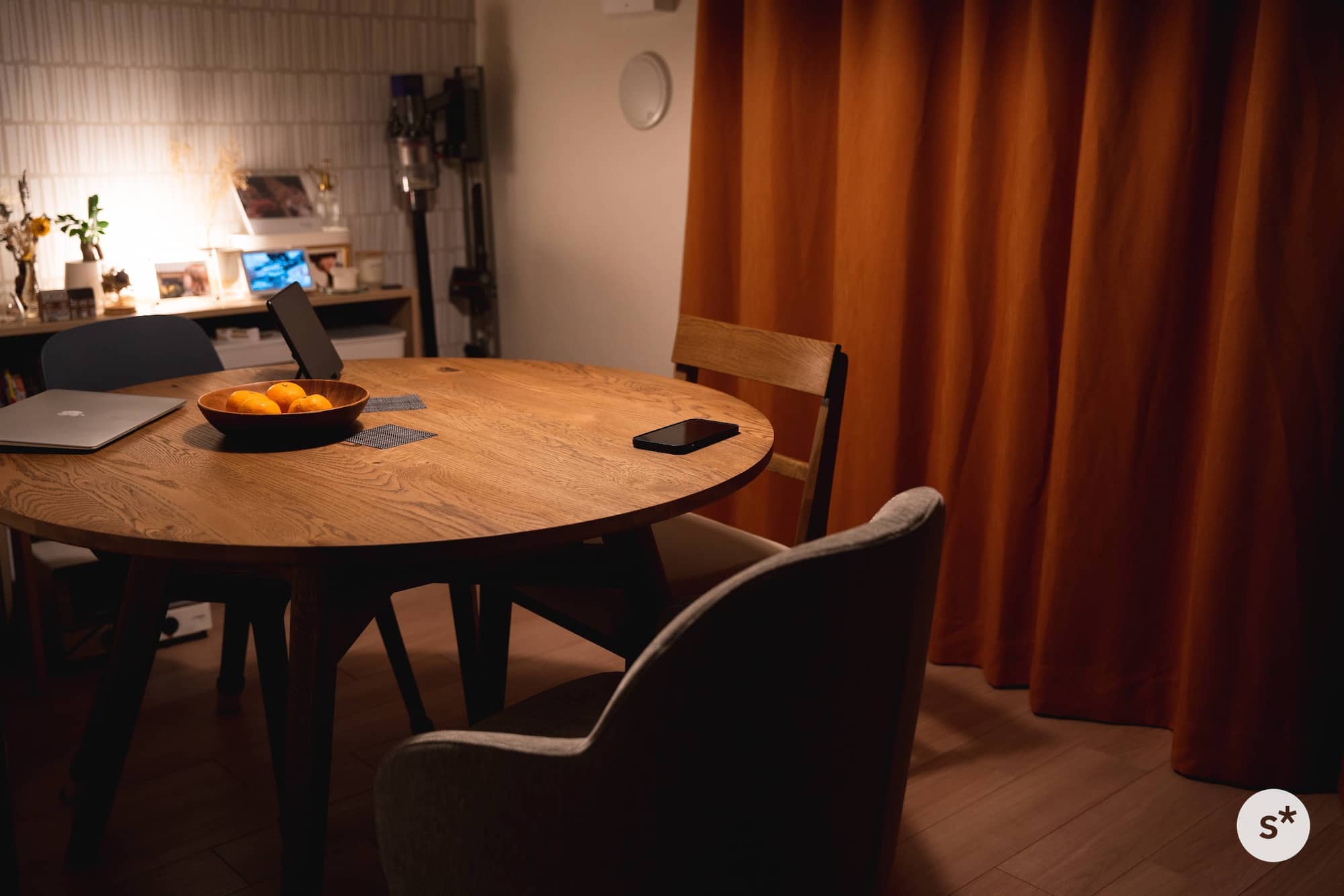 僕は家の中ではデスクにいることが多いのですが、ダイニングテーブルに来て作業すると気分転換になります。ちょっと外出してスタバで作業するのと同じくらいの効果があるんじゃないかな。それを移動時間ゼロで実現できるから最高です。