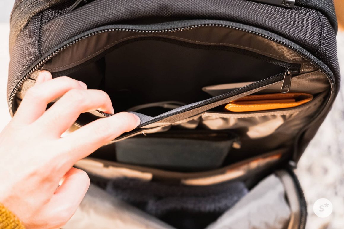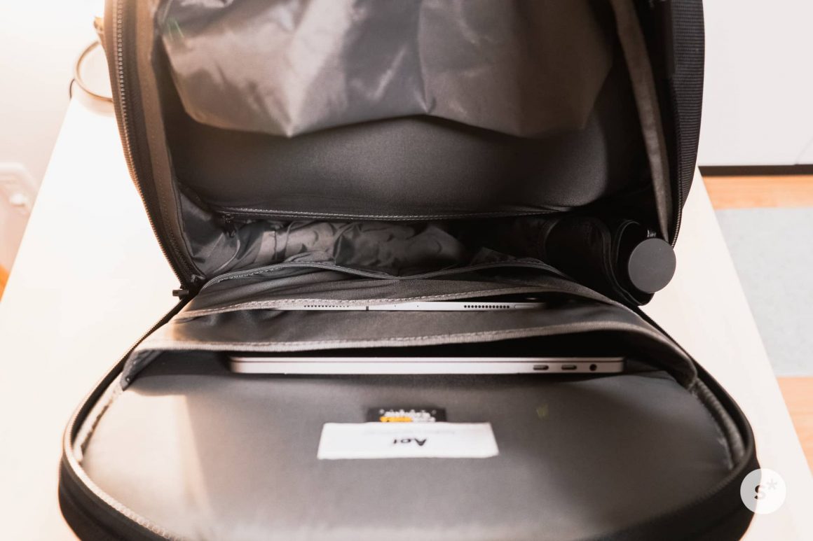 さて、サイドビューから予想がついたかもしれませんが、このAer Day Packは2つのコンパートメントから成っています。