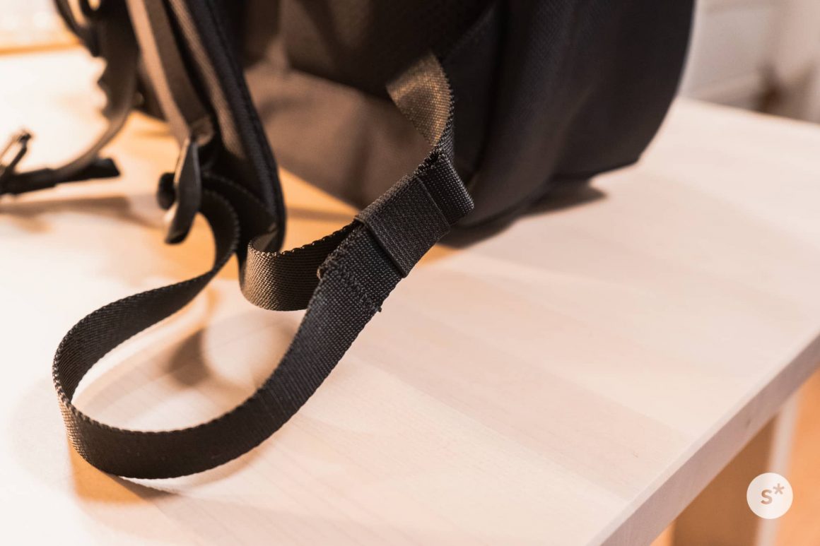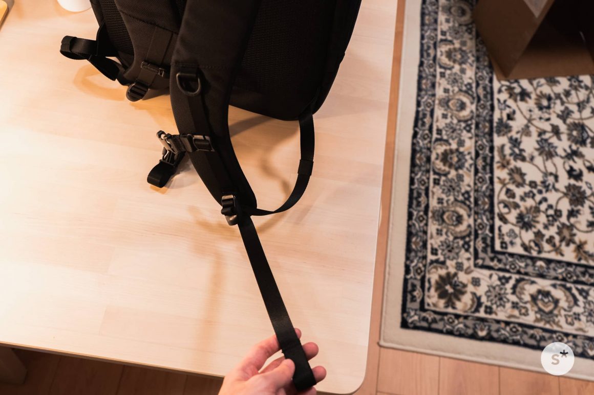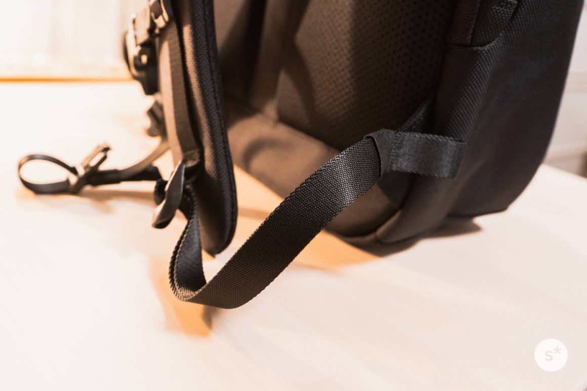 しかし、このAer Day Packには固定用のゴムバンドが最初から備わっています。だから垂れ下がることなく使うことができる。すばらしい…