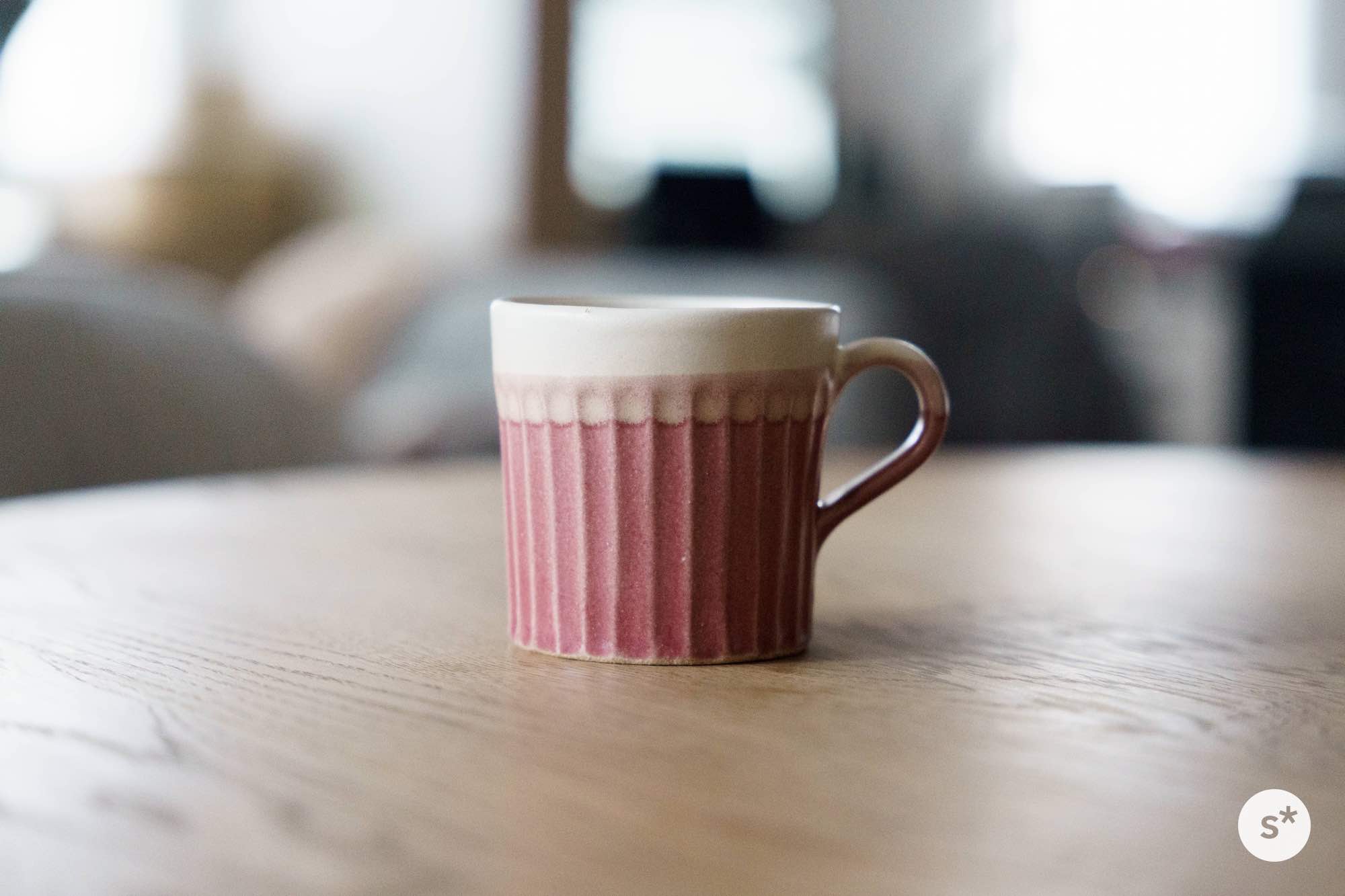 妻用に買ったのは、会津本郷焼・樹ノ音工房さんのマグカップです。最初に朝市の前を通ったときにこのマグカップが目に入って足を止めたので、迷うことなく購入。