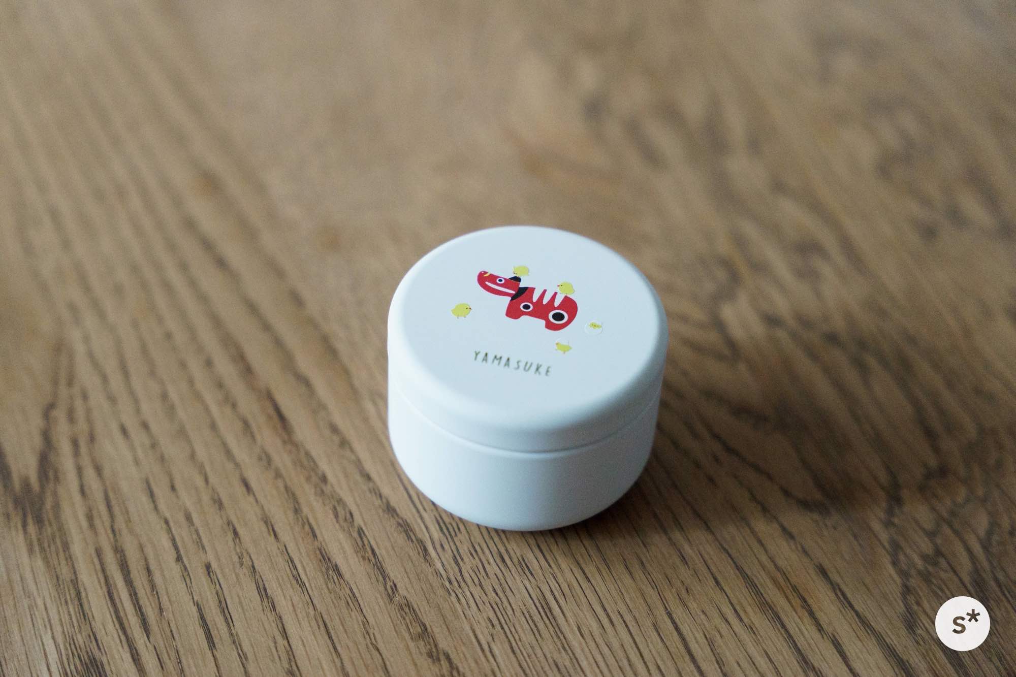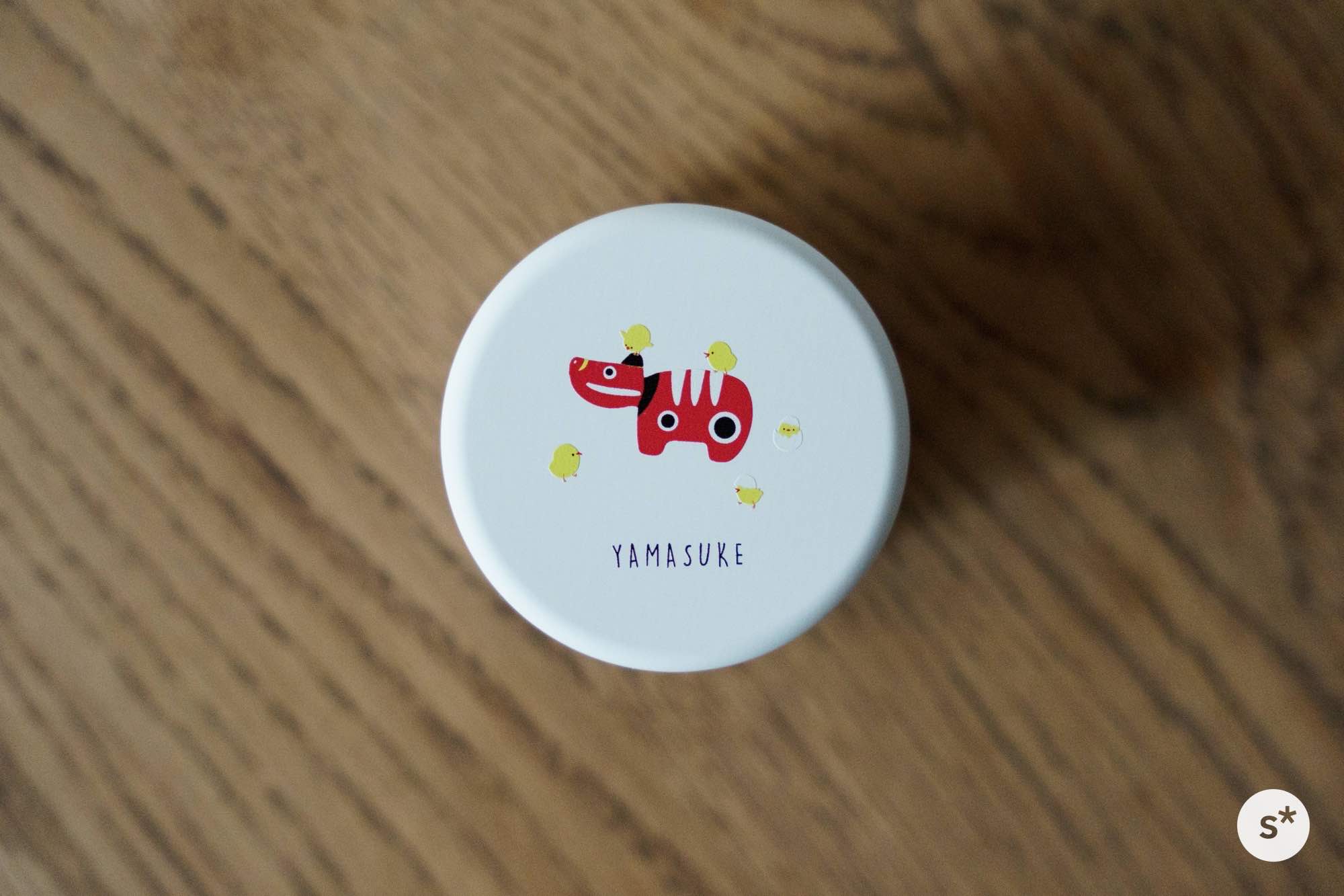 やますけ農園さんのミニ缶です。この可愛らしい形のミニ缶に、これまた可愛らしい赤べこさんがプリントしてあります。すでにうちにも同じシリーズのミニ缶があるので、それと合わせて犬のおやつケースにしようかなと。