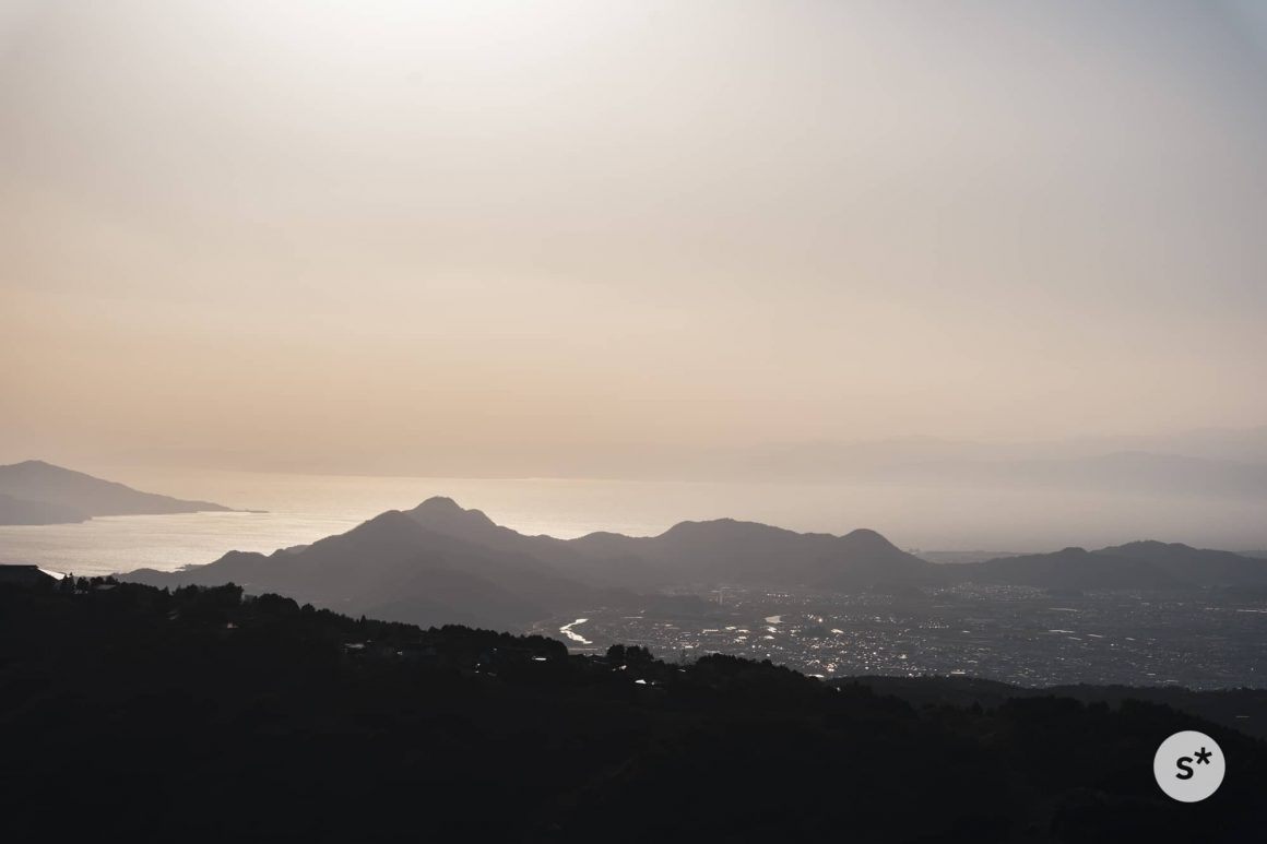 こちらの景色はさっきまでいた沼津方面。傾きかけた日が海に反射して、山のシルエットが浮かび上がります。