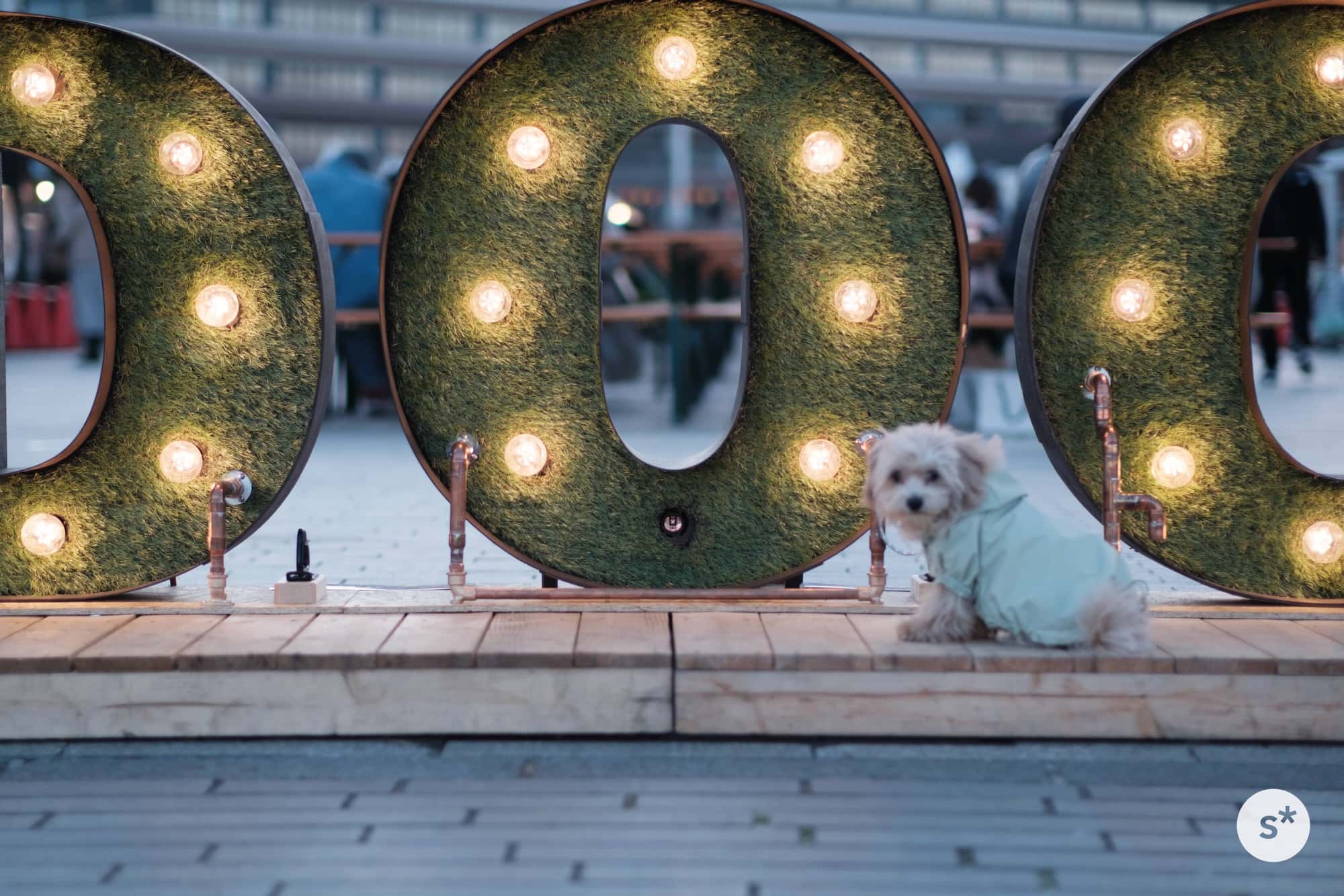 最後に、会場にあった「DOG」モニュメントの前で記念撮影。完全に人間のエゴで、犬自身は意味不明なところに縛り付けられて嫌そうだったので、ちょっとだけ撮って退散しました。嫌なことしてごめんね…!(でもサムネになるカットを押さえたかったの)
