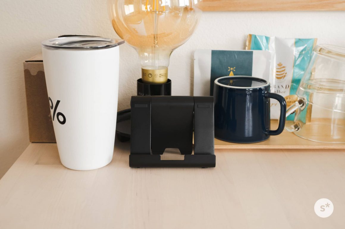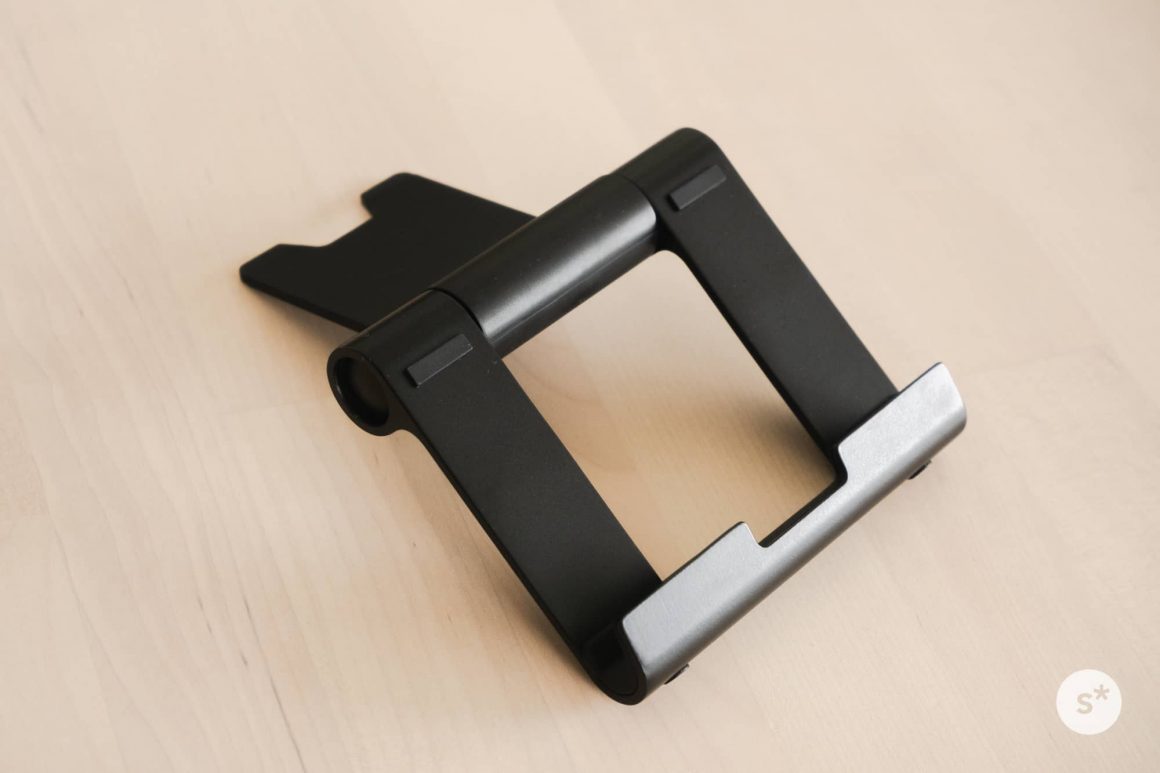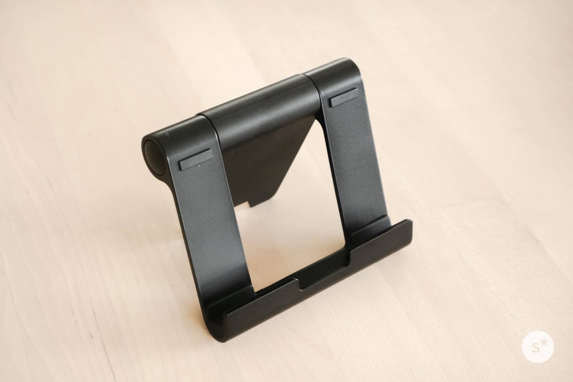 スタンド部分を畳んだ状態から起こして、使いやすい角度にしてみました。
