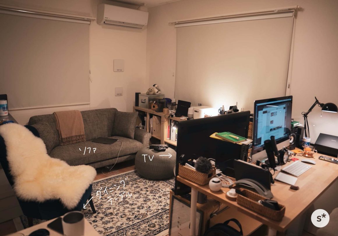 こんな配置なので、食事中にNetflixやAmazonプライムビデオを見たいときは、iPad ProにSmart Folioを装着してテーブルの上に立てていました。
