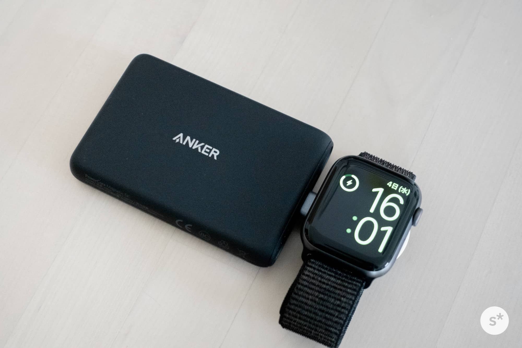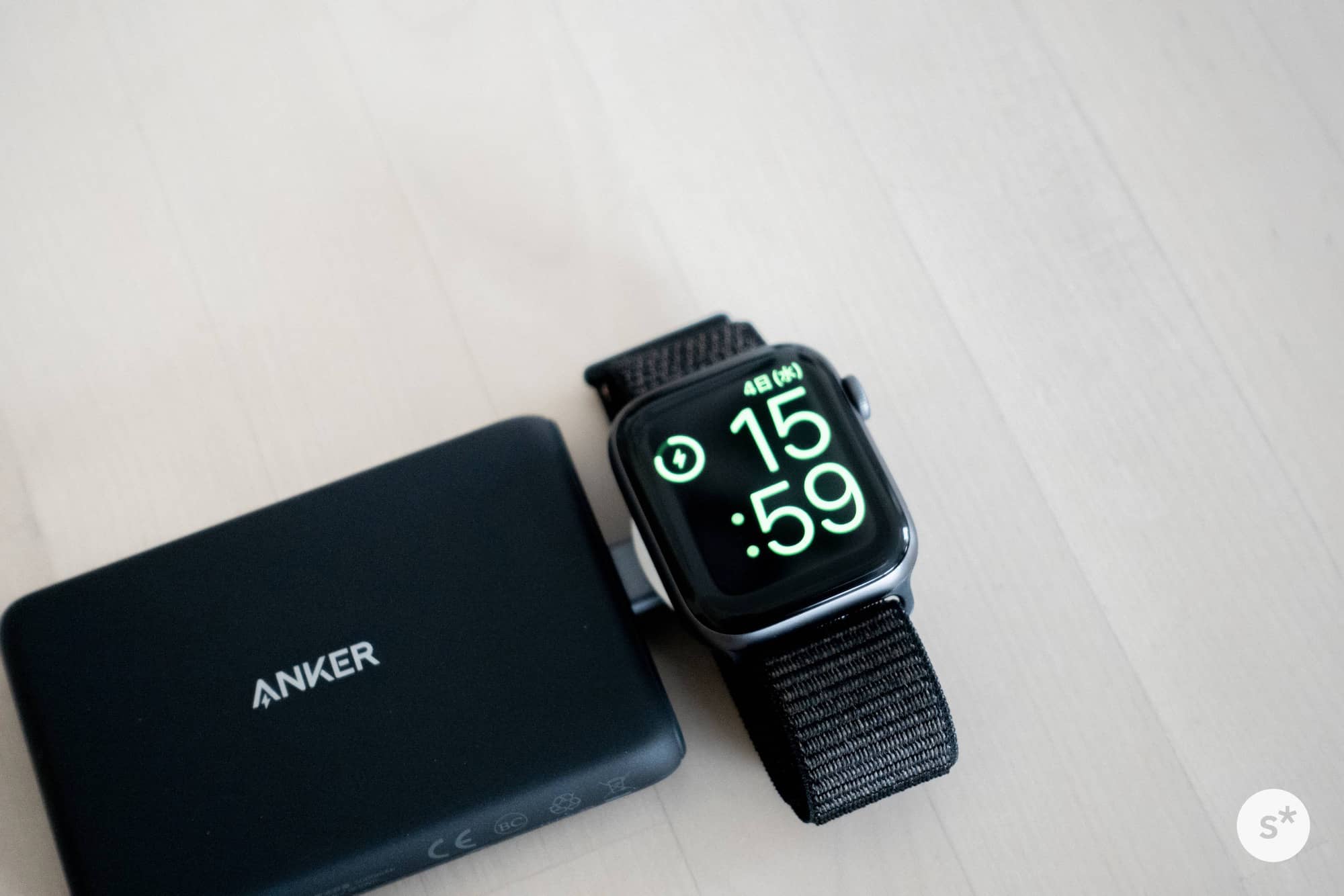 だったら、今回購入したApple Watchの充電器をこのバッテリーのUSB-Cポートに接続すれば充電できるのでは? そう思ってやってみました。