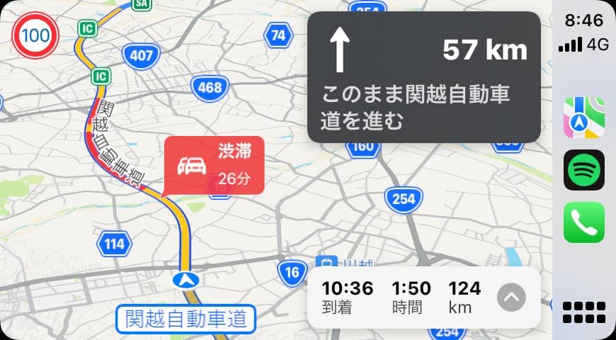 道のりが長くなればなるほど、Appleマップの到着予想時刻の正確さは特筆すべきです。例えば、夜中に東京を出て九州まで車で行くようなときであっても、当初の到着予想時刻(東京の時点で表示されていたもの)と大差ない時間に到着します。