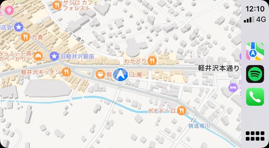 行き先を設定せず現在地周辺の地図を表示しているときでも、主要な道路が濃く表示されるようになりました。例えば以下のような感じで、長野県道133号(軽井沢本通り)や、旧中山道(右下に向かって伸びている道)などは濃く表示されています。