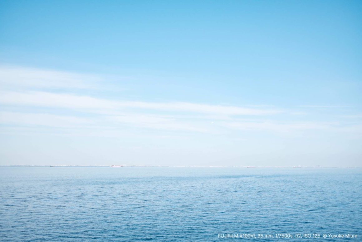 見渡す限りの美しい青、青、青。この日の海は比較的穏やかで、空も快晴だから、文句の付けようがないコンディションでした。最初はあまり乗り気じゃなかったけど、とりあえずで首都高に入ったのもよかったし、えいや!でアクアラインに乗ってよかった。遠出しないと吸収できない元気もあるのです。