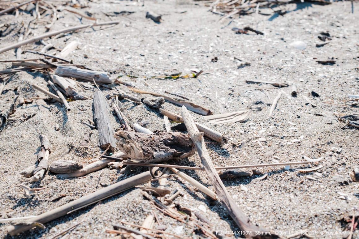 そして、X100VIの35mmという画角も、ここで写真を撮るのを難しくしている要因のひとつかもしれません。広くもなく狭くもない。この絶妙な(微妙な?)画角がうまくはまる場面ももちろんあるけれども、このような浜辺では扱うのが難しい。