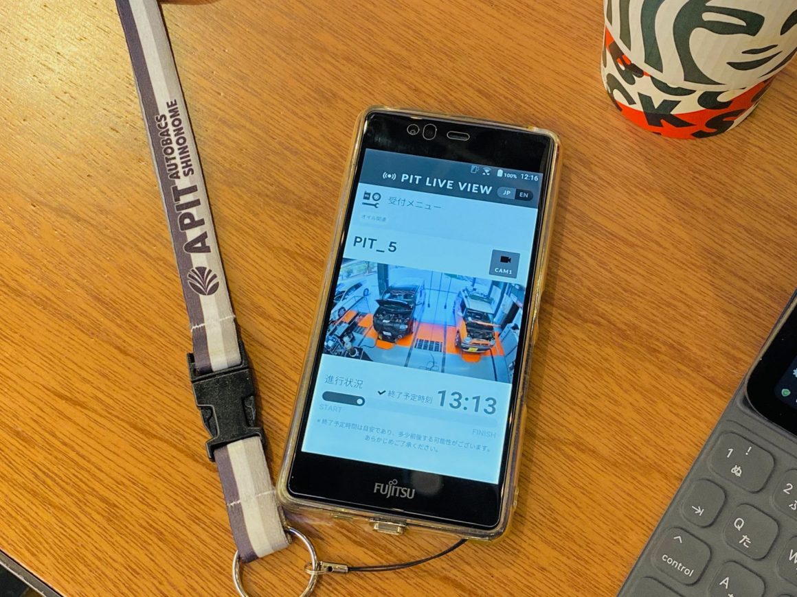 さらに、自分のクルマが作業されている様子をライブ中継で見れるスマホも貸してくれます。待ってる間は何かとソワソワするので、こうやって確認できるのはありがたいですね。