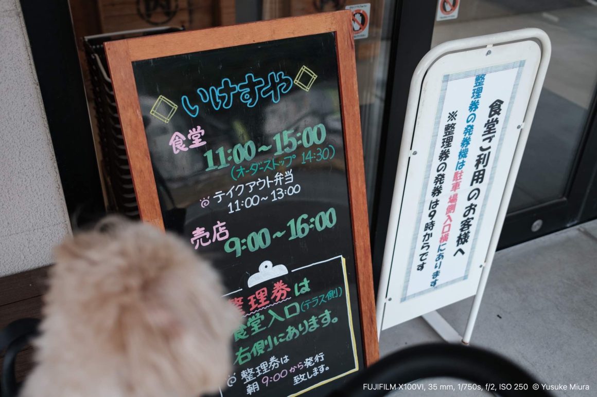20分ほど待って、テラス席に着席。犬はカートに乗ってもらって、席まで一緒に連れて行きました。ちなみに、整理券を取るときには、犬がいることを伝える必要があります。