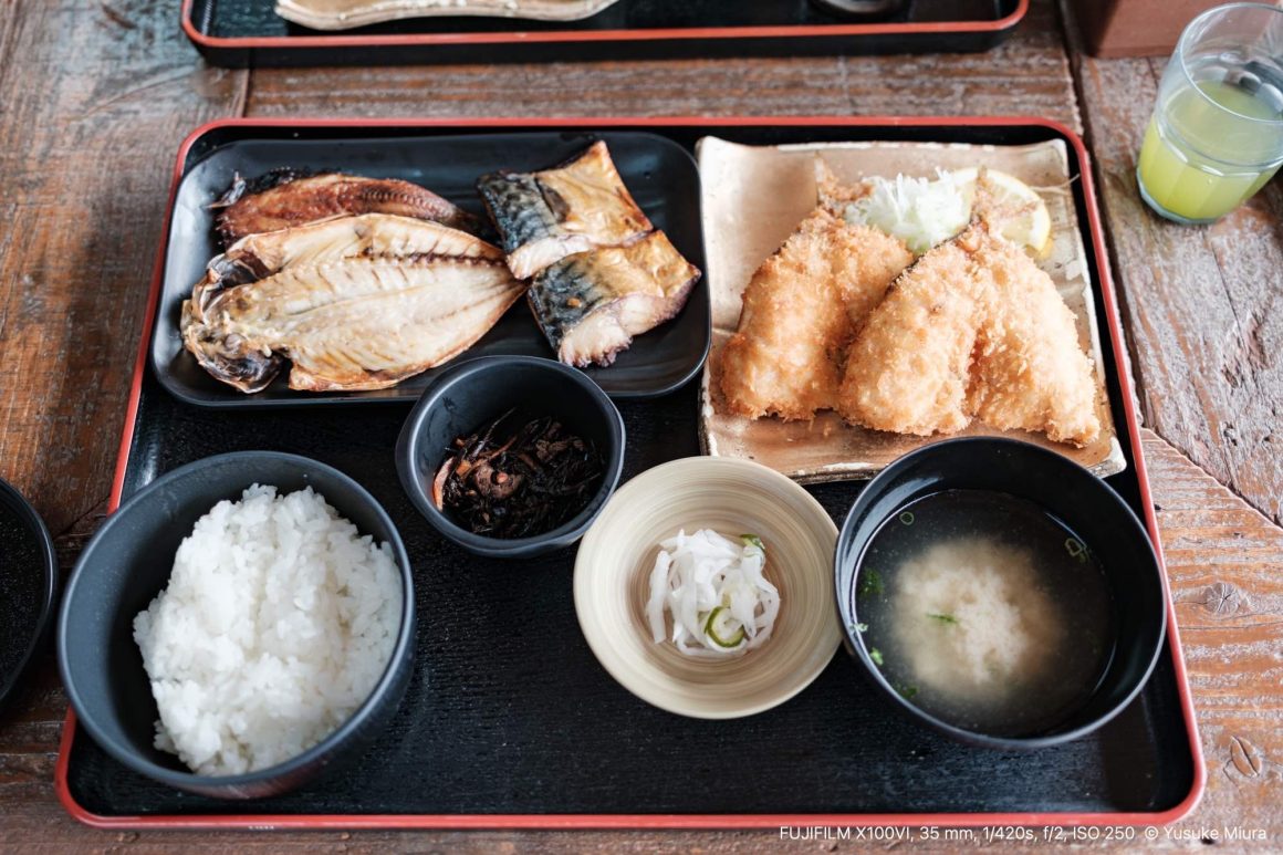犬も気持ちよさそうに海風を浴びていて、僕らにとっても最高の昼食になりました。港の雰囲気を感じながら、揚げたてのアジフライを頬張る贅沢は、この食堂ならではです。