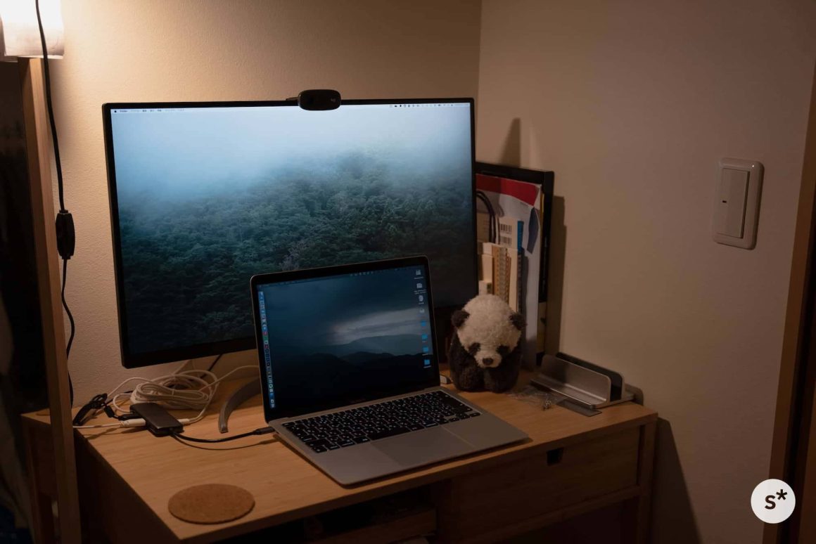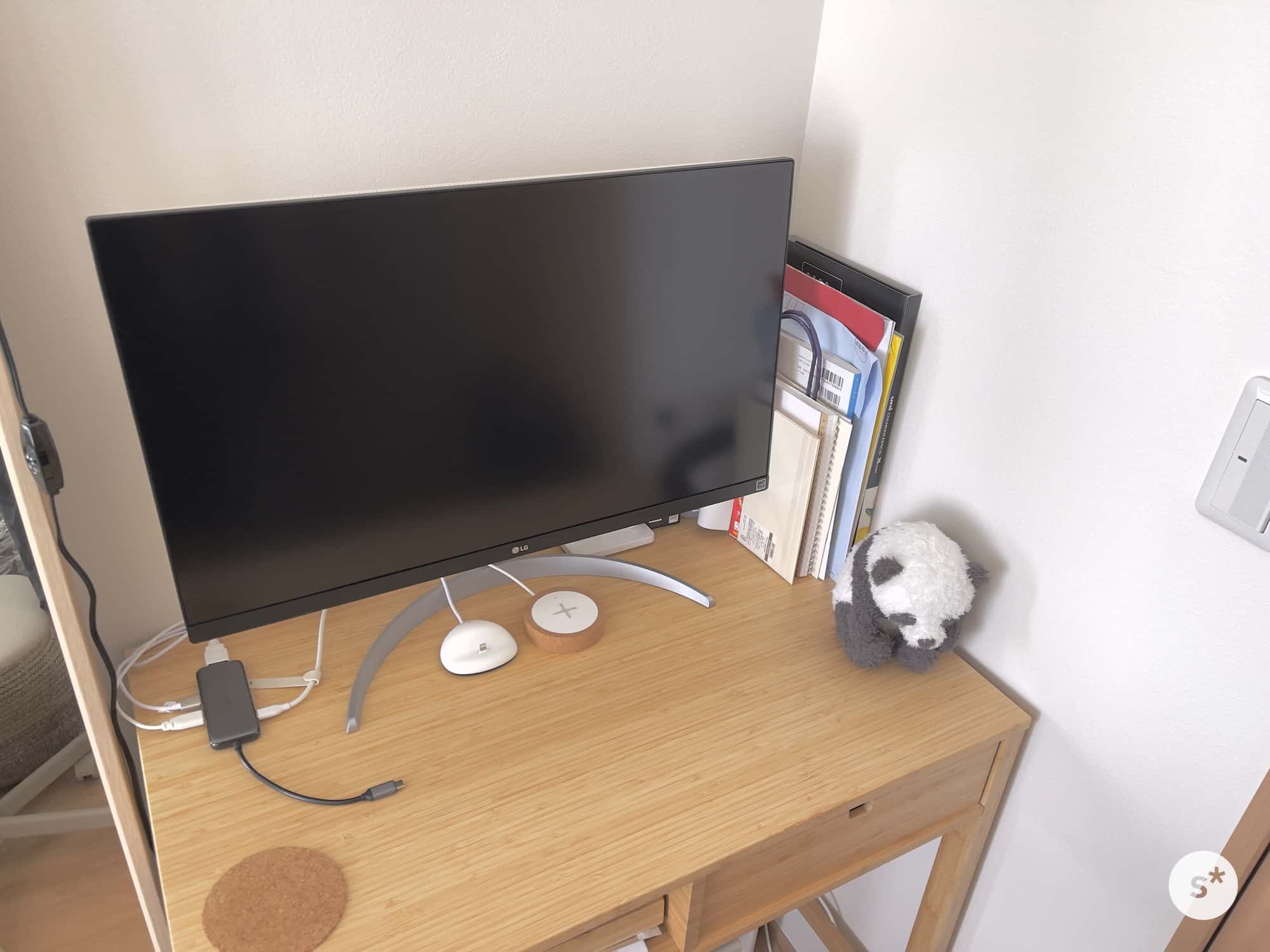 このような状況だったので、寝室のデスク上で会社のPCとM1 MacBook Airを使い分けられるようにしたいという思いが日に日に強くなっていきました。古いiMacを撤去してディスプレイを置けば万事解決なんです。