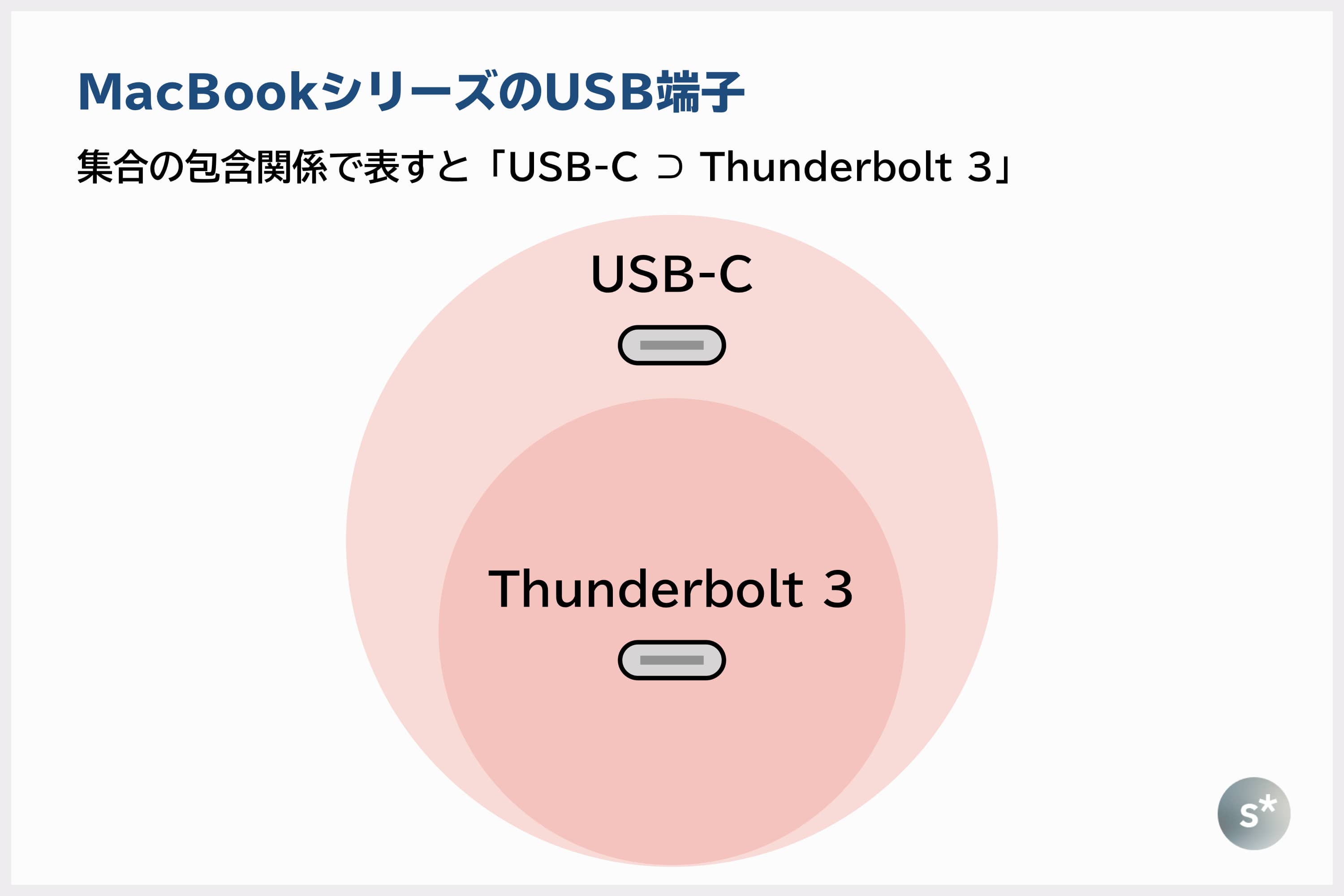 つまり、Thunderbolt 3に対応していればUSB-Cも使えるということです。しかし、逆は必ずしもそうではありません。