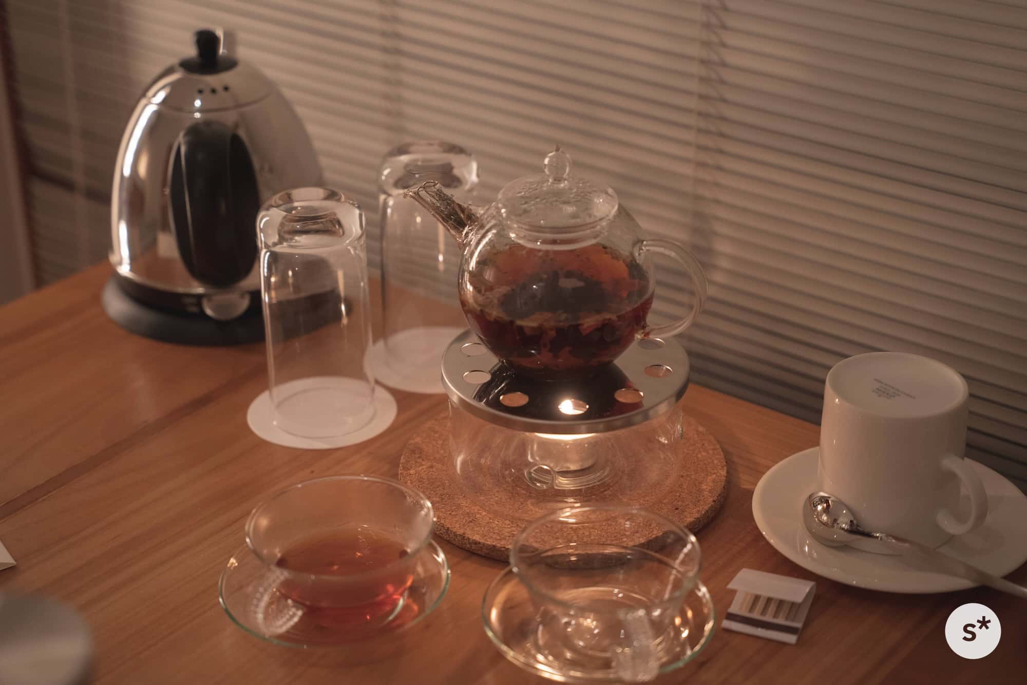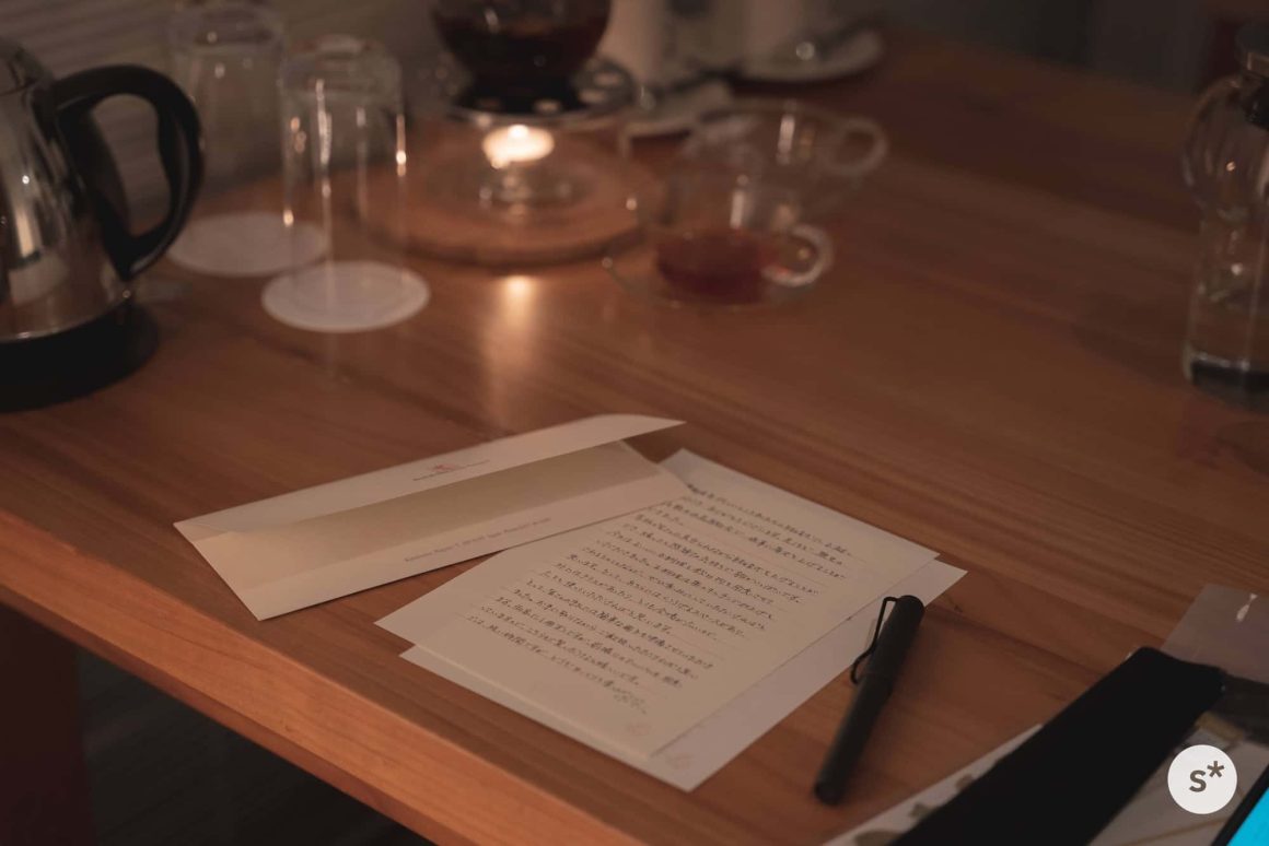 このテーブルの上には、ウェルカムティーが準備されていました。これを飲みつつ、手書きでスピーチ原稿を仕上げる。ちょっぴり緊張感があって、いい時間だったなあ。