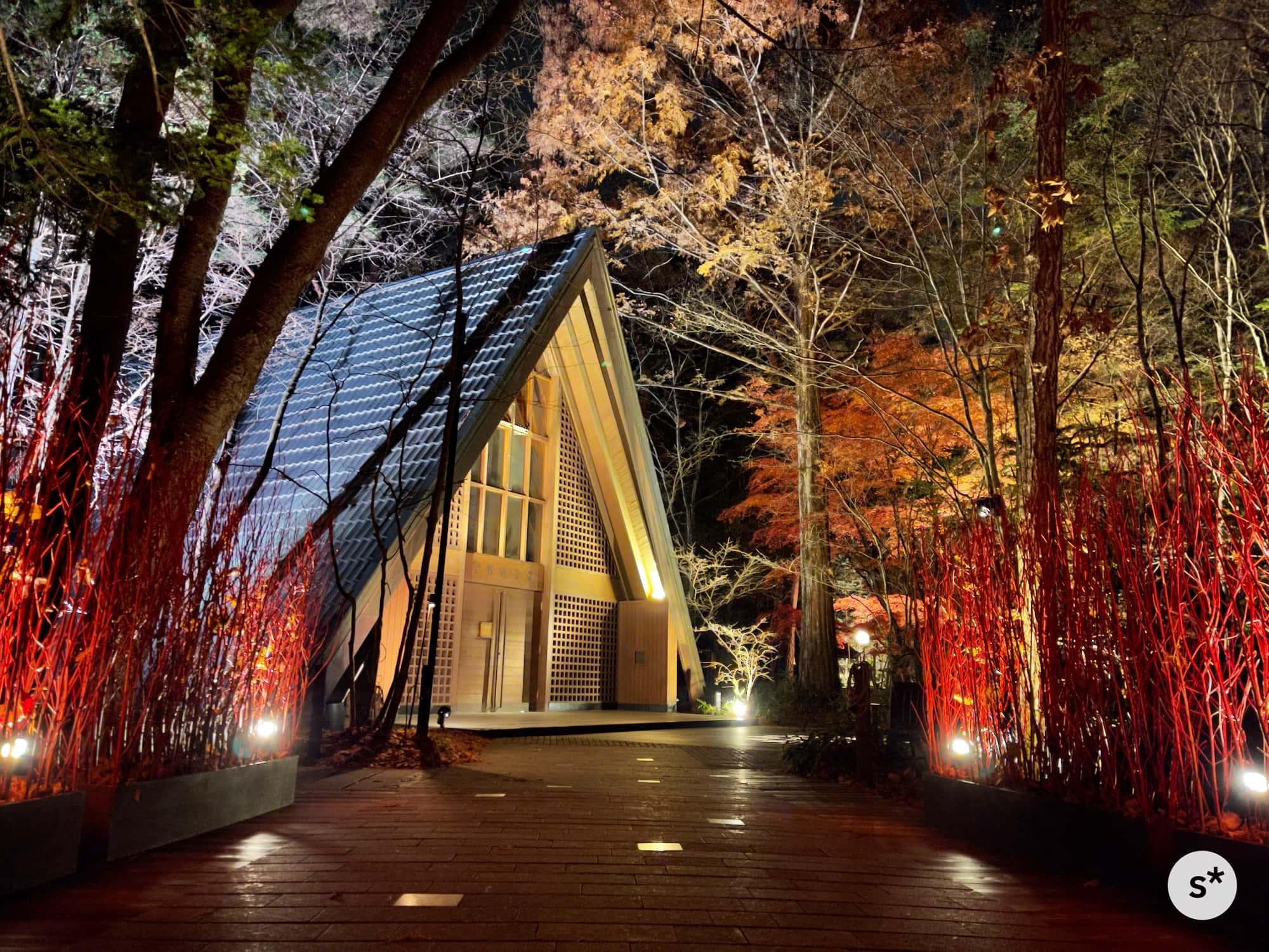軽井沢高原教会はクリスマスのライトアップもきれいなので、来年のこの時期に泊まるのもいいかもしれないなあ。
