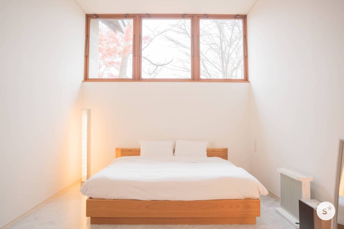 デザイナーズコテージにもいくつかの間取りがあり、ベッドの上に窓がある部屋は2部屋だけ。自然光で明るい写真を撮りたかったので、絶対にこの部屋がいいと思っていたんです。