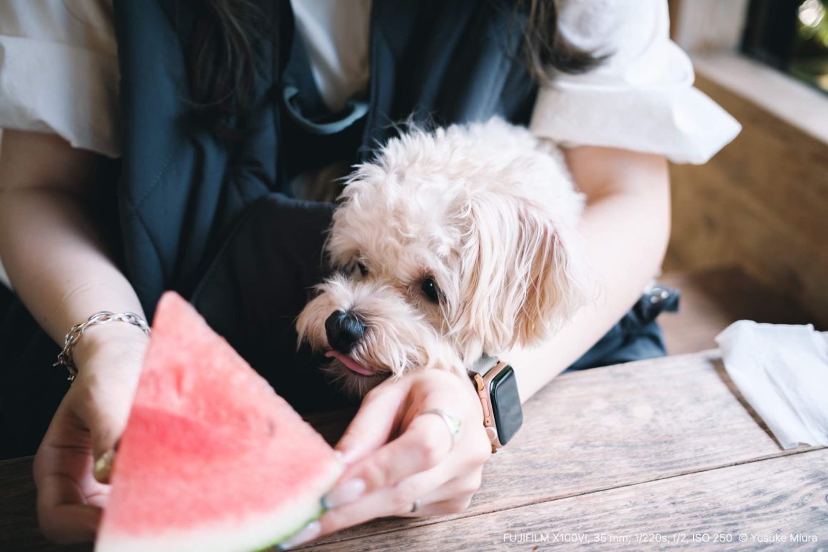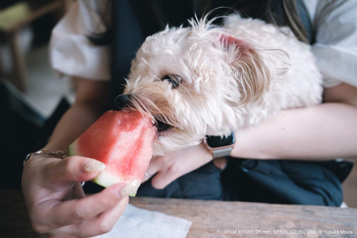 犬にも少しだけあげてみたら、もう目の色が変わっていました。スイカを持っている手の動きにピッタリついてきて、今か今かと待っている。ひとかけら口に入れると、信じられない勢いでむさぼり食べて、あっという間に飲み込んでしまう。もっとゆっくり食べればいいのにねえ。