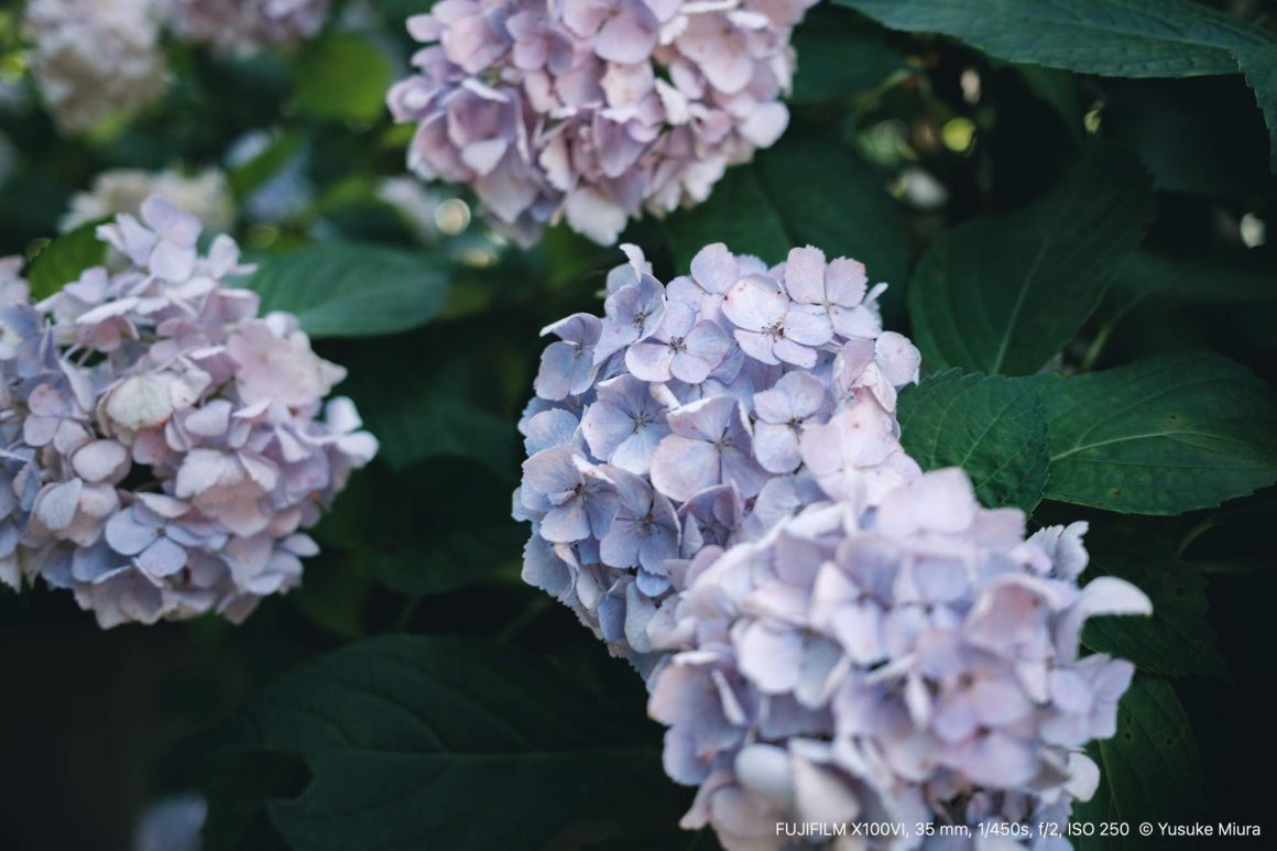こういう終わりかけの紫陽花に、趣を感じます。花の色が少しずつくすんできて、夏の気配をまとい始めるあの雰囲気。咲き誇る美しさとは違う、ちょっと寂しげな風情があって、ついシャッターを切りたくなる。