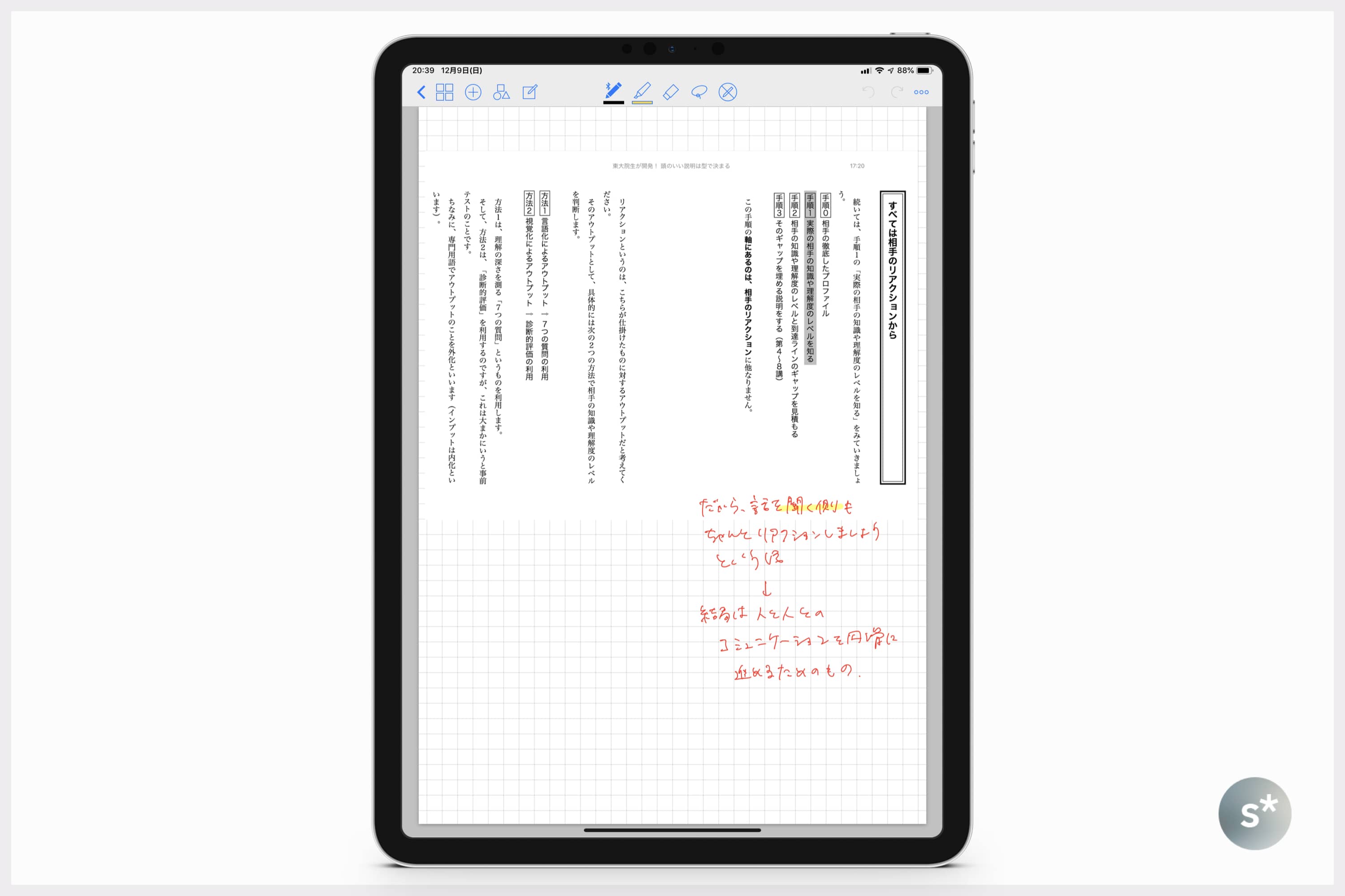Kindleアプリでスクリーンショットを撮り、GoodNotes 4に貼り付け、思ったことをメモします。すると、読み終えたときには「大事だと思った部分が抽出されている読書ノート」が完成しています。これはすごい。