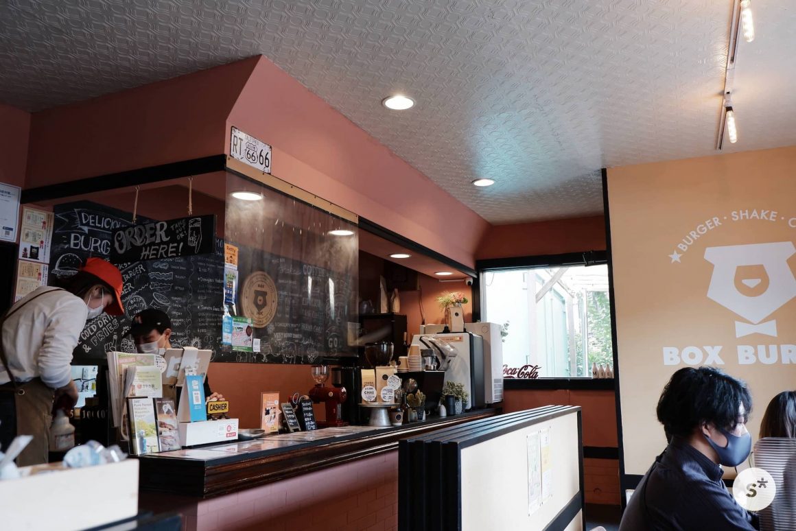 席を確保してからカウンターで注文します。豪華な箱根バーガー、スタンダードなボックスバーガーがありますが、量的に食べられるか心配なのでボックスバーガーにしました。