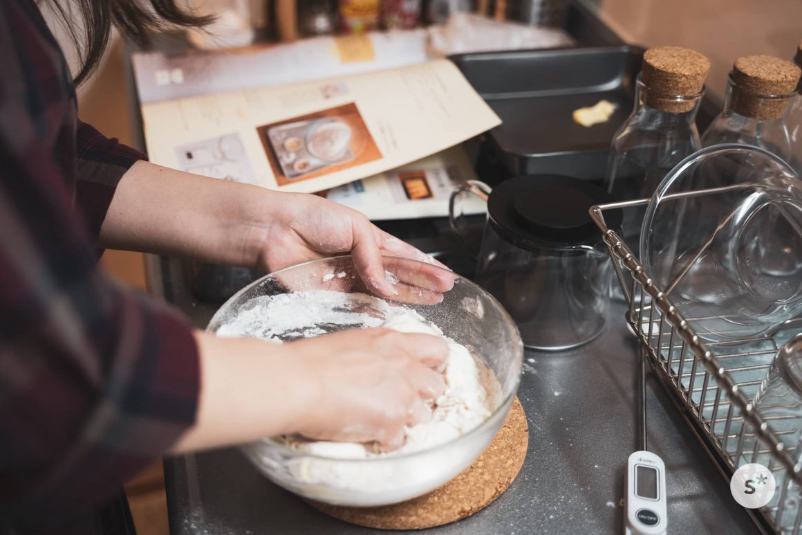 レシピ本を参考にしながら、材料をボウルに入れて、35度のお湯を入れる。お湯はレンジで数十秒加熱するといいって書いてあったから、そうした。でも少し加熱しすぎたから、冷たい水を入れて冷やした。