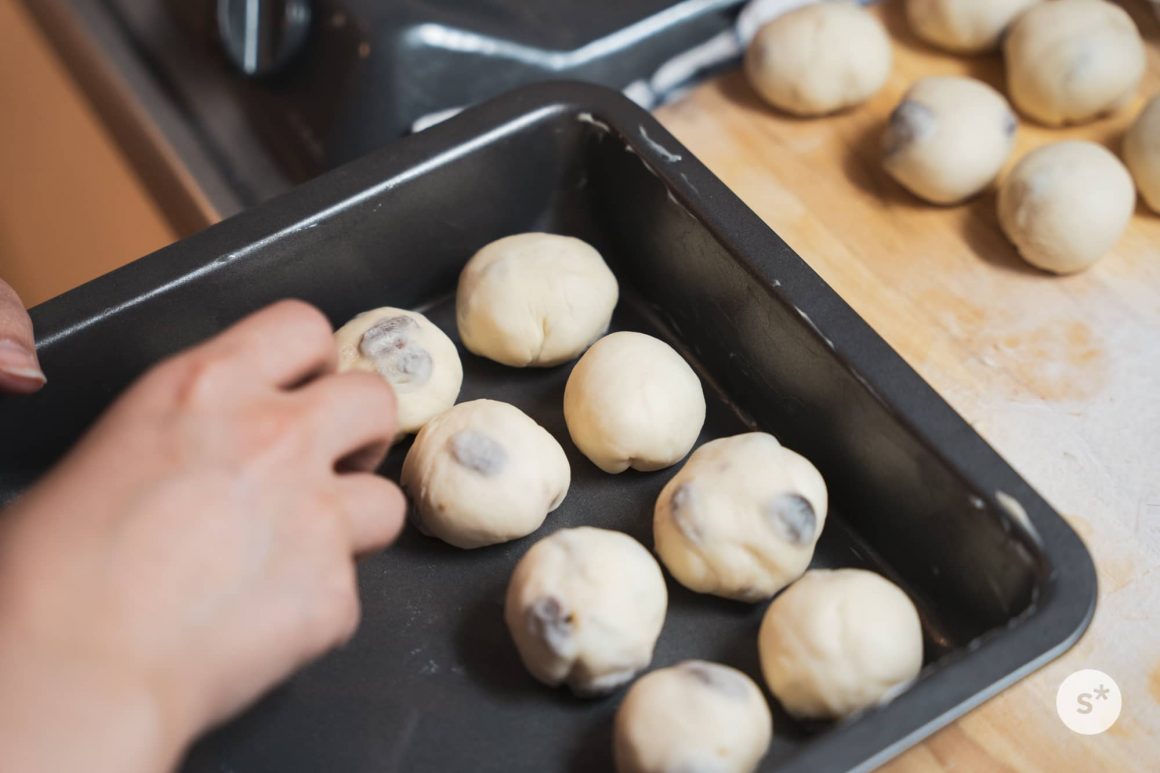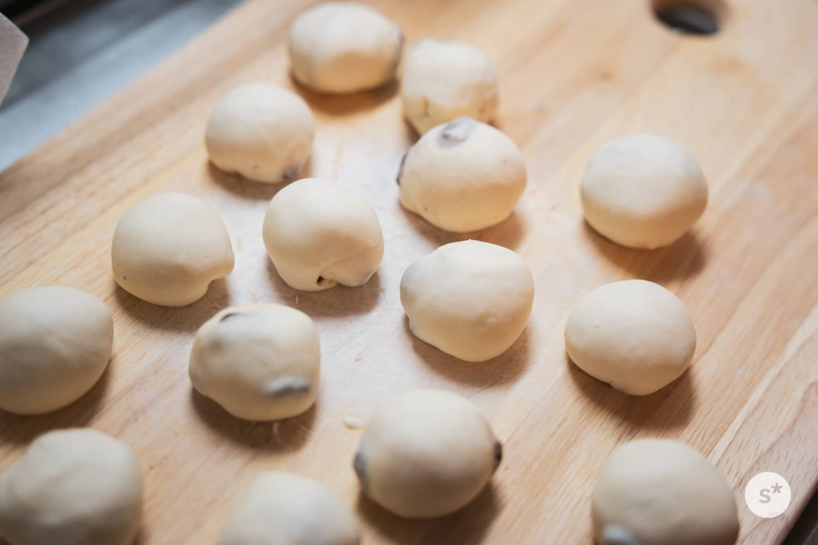しばらく経って、少しは膨らんだはずと自分らを言い聞かせながら、パン生地を型に並べる。並べたあとももう少し休ませて、その間にオーブンの予熱をして、焼く準備をする。
