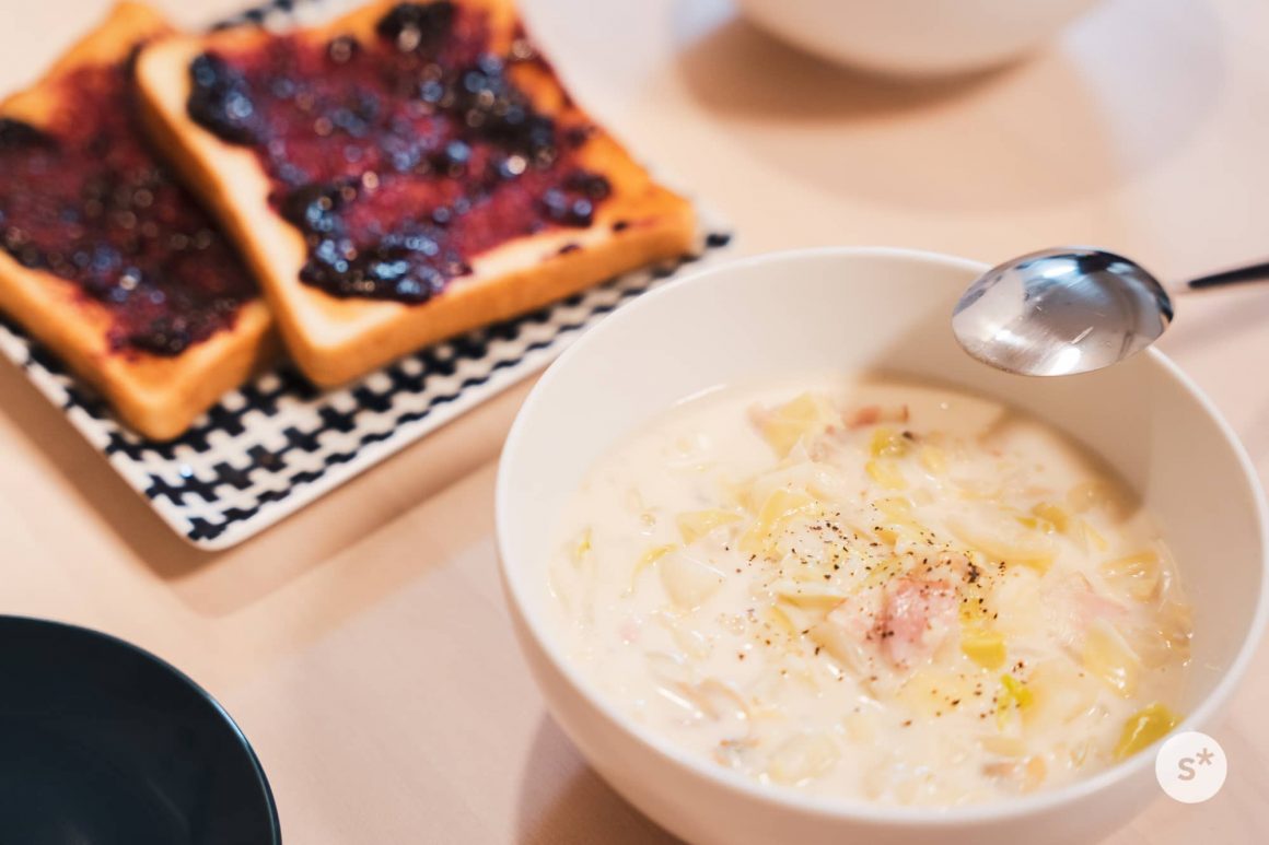 結局、クラムチャウダーのお供には市販の食パンにブルーベリージャムを塗って、おいしく頂いた。
