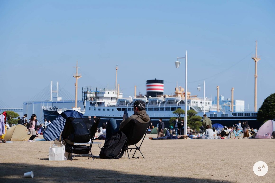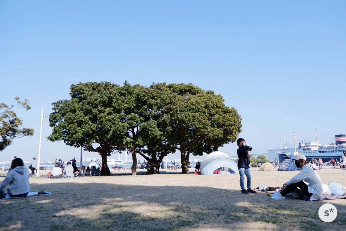山下公園には、同じようにシートを広げてピクニックする人、テントを設置して寝転ぶ人、お散歩する人、鼻の写真を撮る人など、みんな暖かい休日を満喫しているようでした。