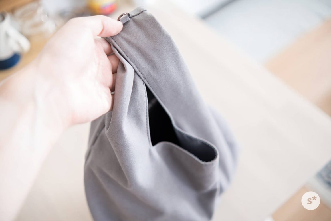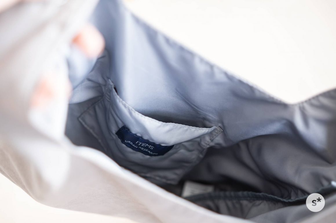 購入したのはITEMS URBAN RESEARCHの商品で、「マイクロスウェード 2wayマルシェバッグ」というもの。やわらかいスウェード生地のバッグで、エコバッグとしても普通のバッグとしても使える商品です。