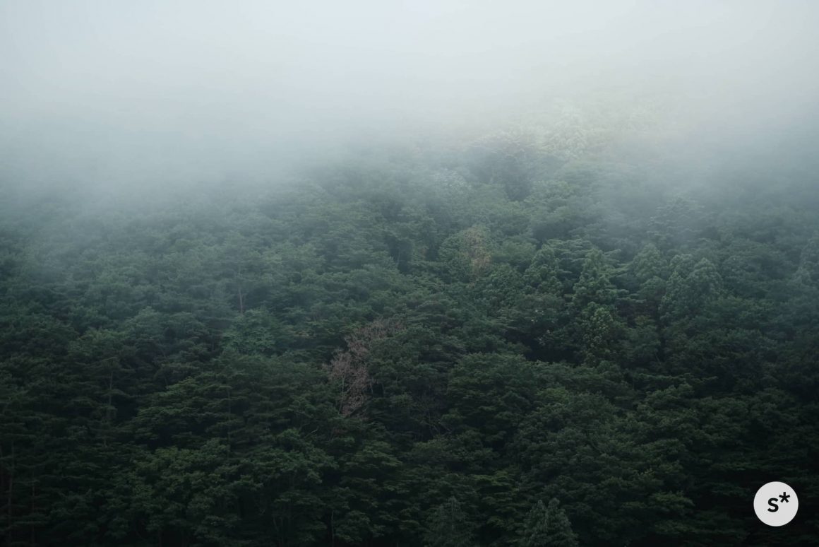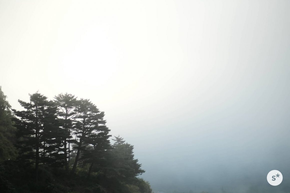河口湖インターで中央道を降り、精進湖に向けて一般道を走っていると、青木ヶ原樹海あたりから霧が出てきました。この感じは精進湖にも深い霧がかかっているパターンかなと思って進むと、やはりそうでした。昨年秋に訪れたときも同じような状況で、オレンジ色に光り輝く精進湖を見ることができました。今回もそうなるでしょうか。