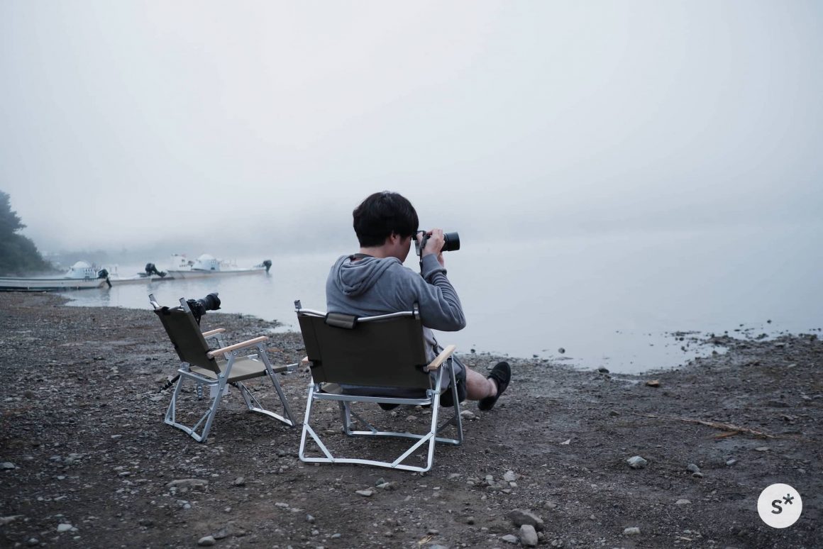 これまで精進湖を訪れたときは車の座席に座って過ごしていましたが、外に置いた椅子に座るのは別のよさがありました。肌に当たる風、目の前で魚が撥ねる音、鳥たちが起きて活動を始める声、いろいろなものを五感で感じ取ることができるのです。