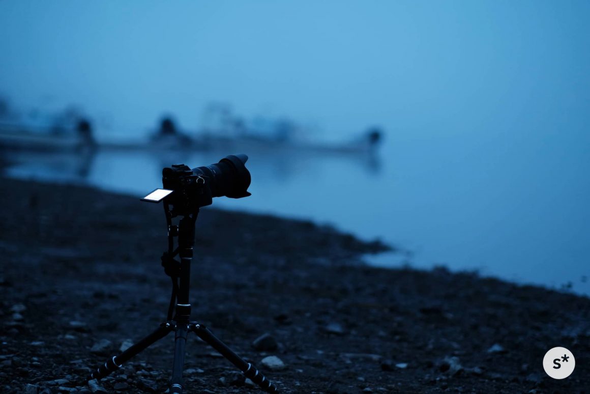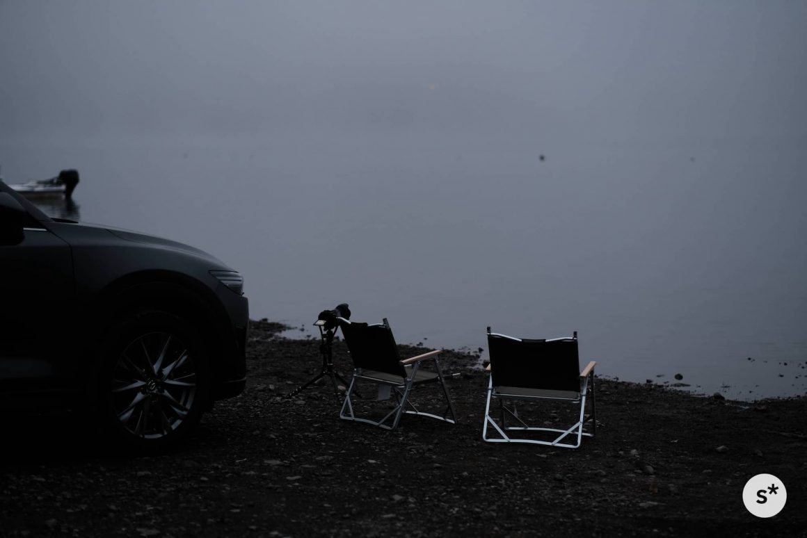 そんなことを思いながら、湖畔まで乗り入れた車の前に定点観測(タイムラプス)用のカメラを設置。その横にコールマンのコンパクトフォールディングチェアを置いて、準備は万端です。あとは日が昇るのを待つだけ。