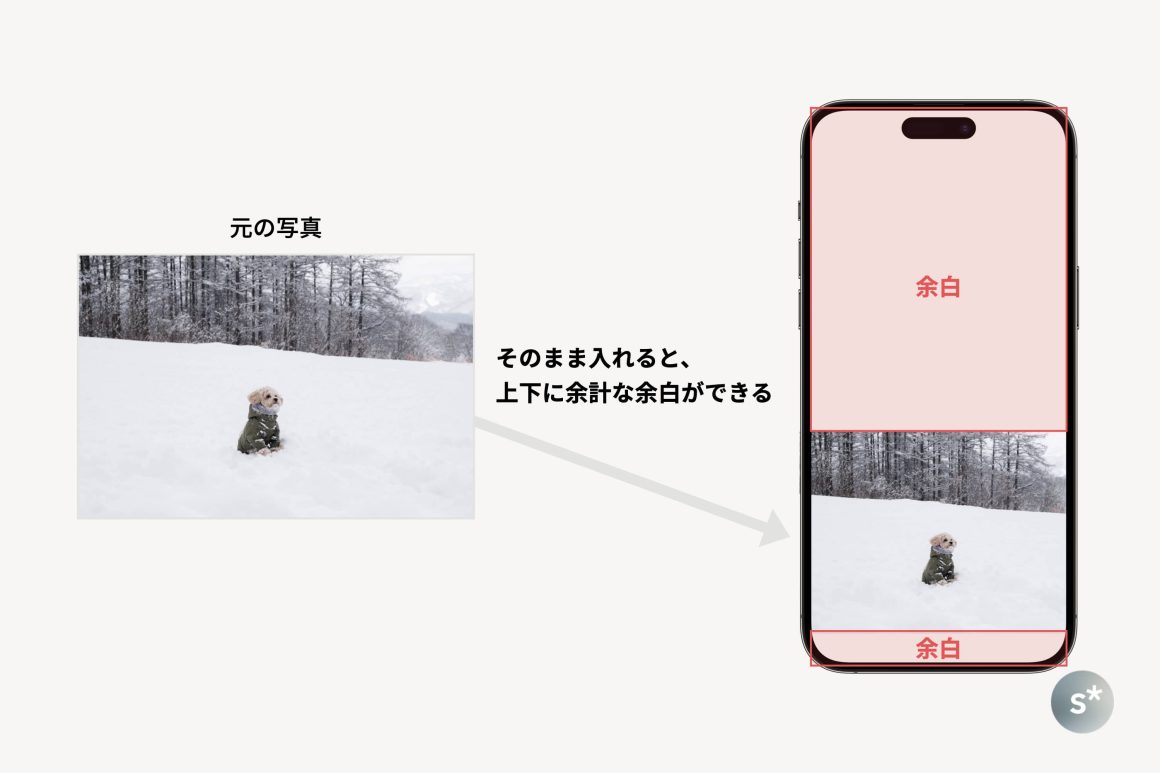 次に、作成したキャンバスに壁紙にしたい写真を配置します。僕は今回、スキー場で遊ぶ愛犬の写真を使いました。