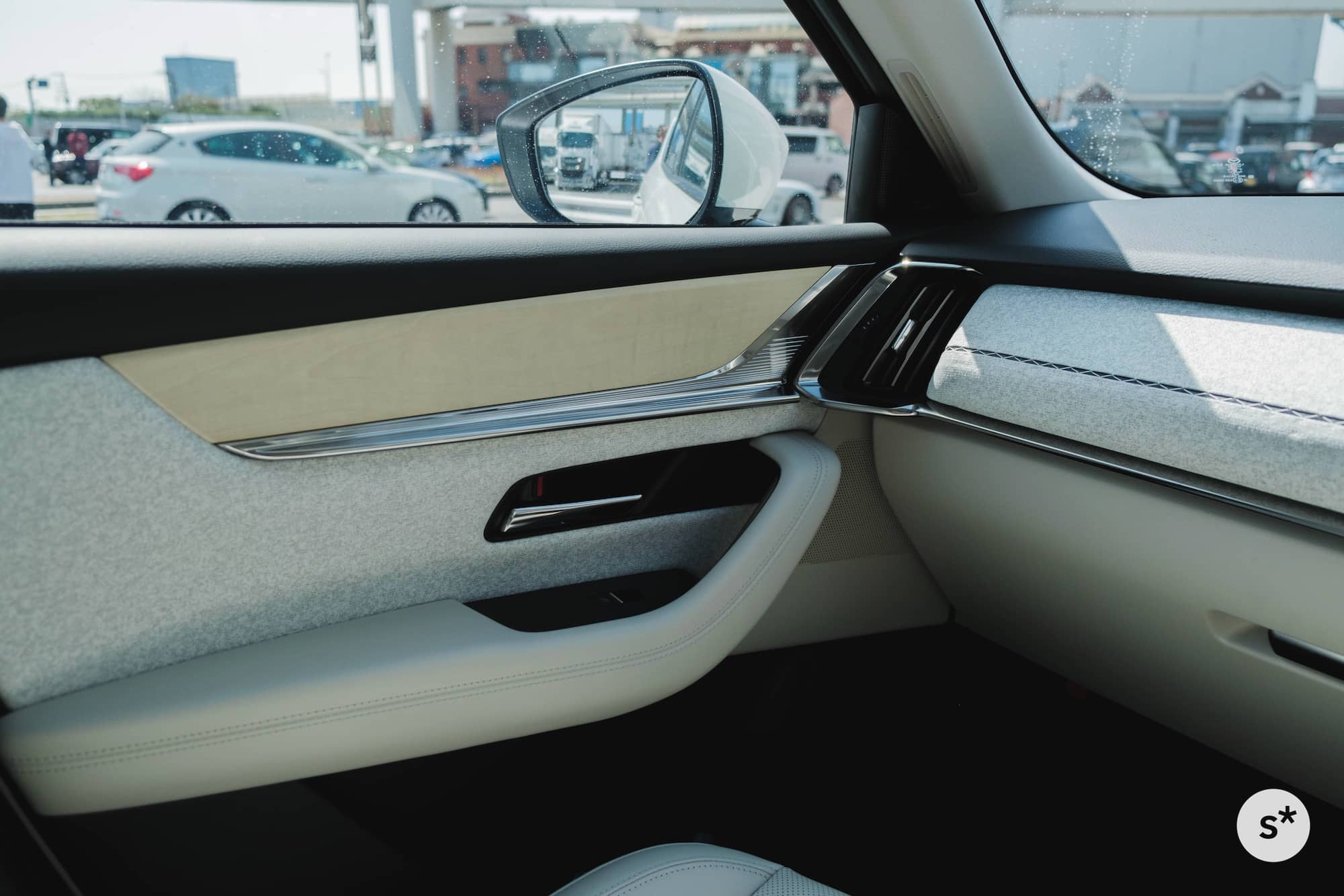 ダッシュボードには、日本の伝統美を思わせるようなファブリック素材が使われており、非常に繊細な「かけ縫い」という技法で2枚のファブリックがつながっています。