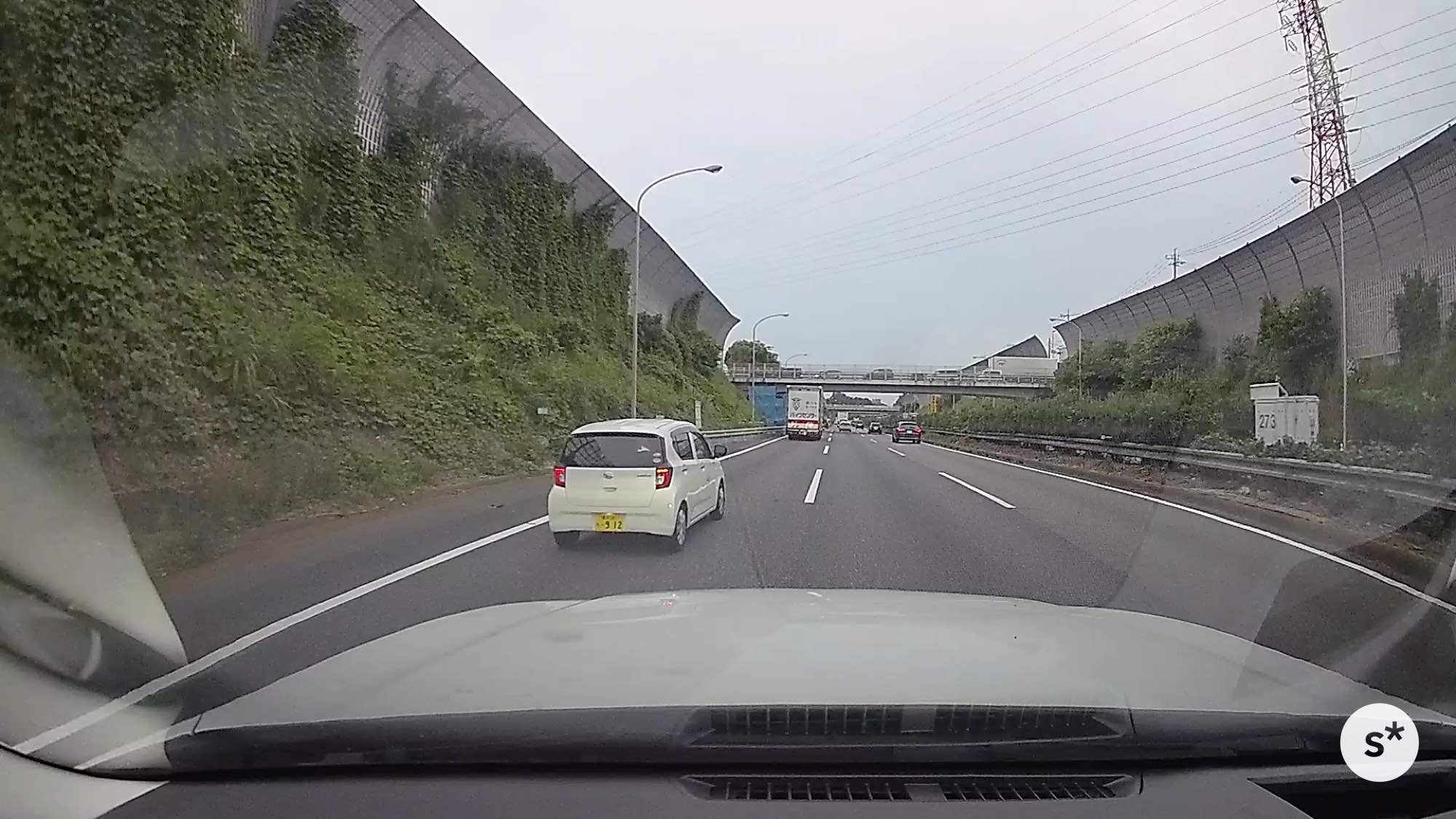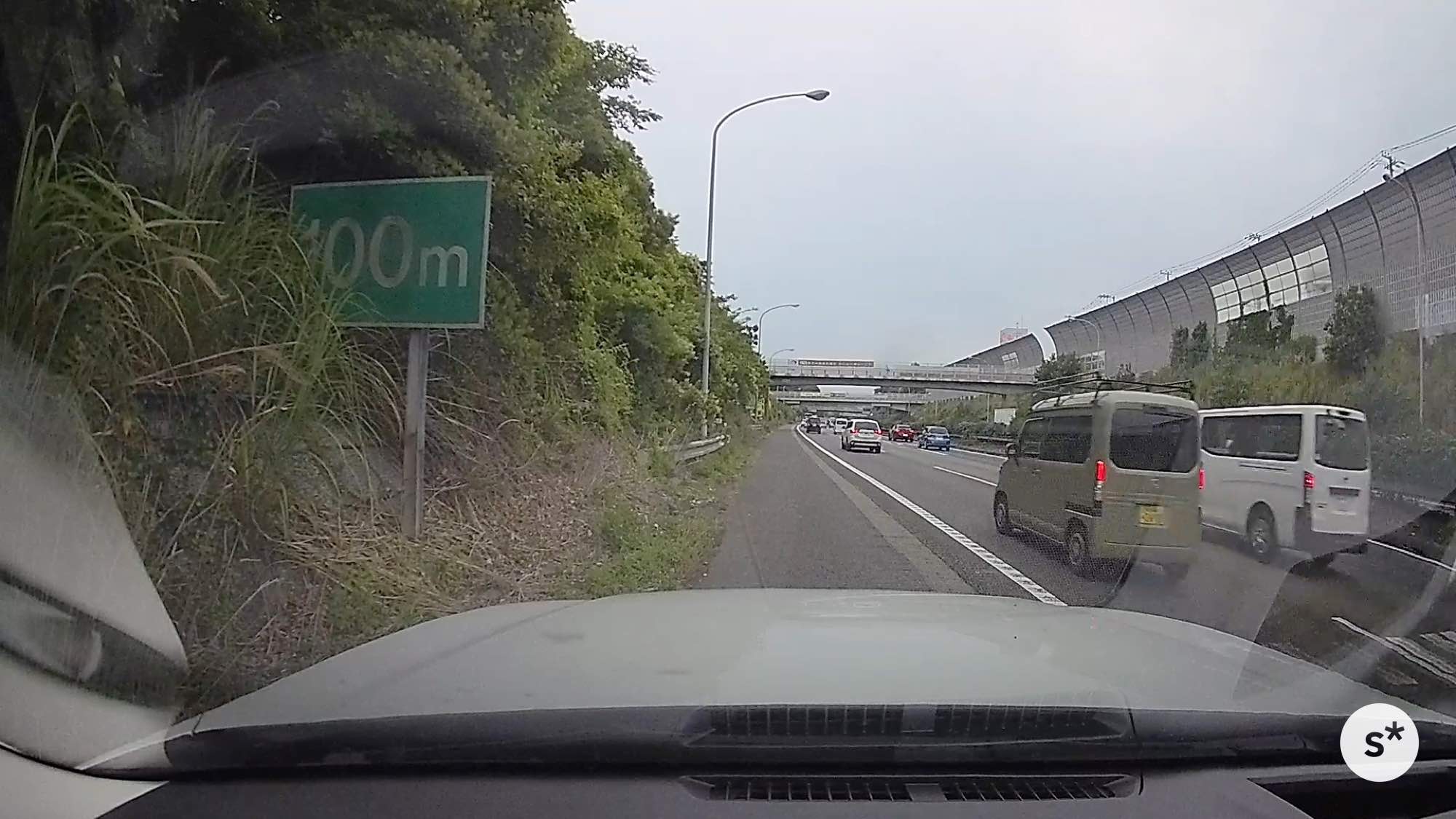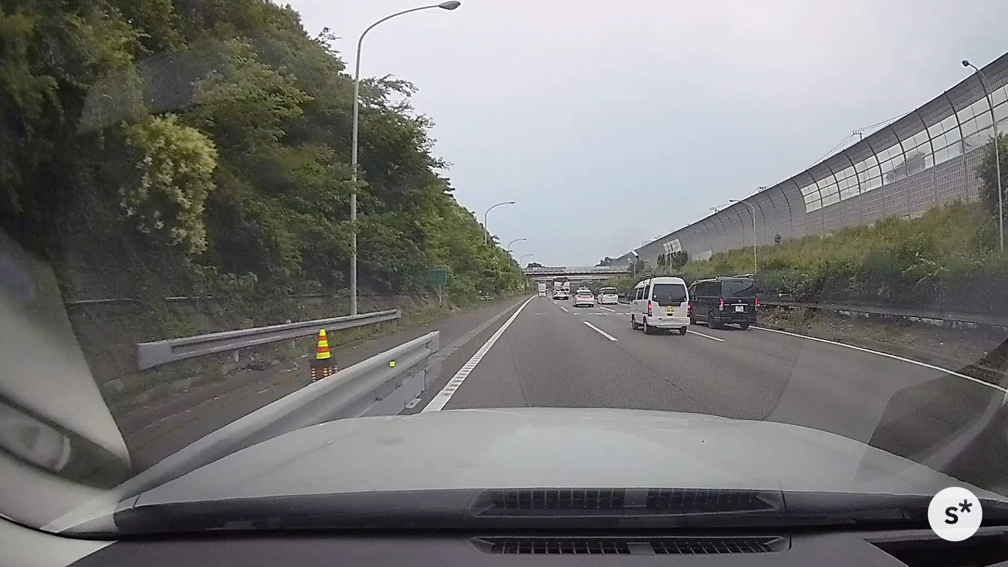 3車線あるうちの追越車線(一番右)を走行していました。大和トンネル恒例の渋滞中だったのですが、ちょうど流れるタイミングがあって50 km/hくらいは出ていたと思います。