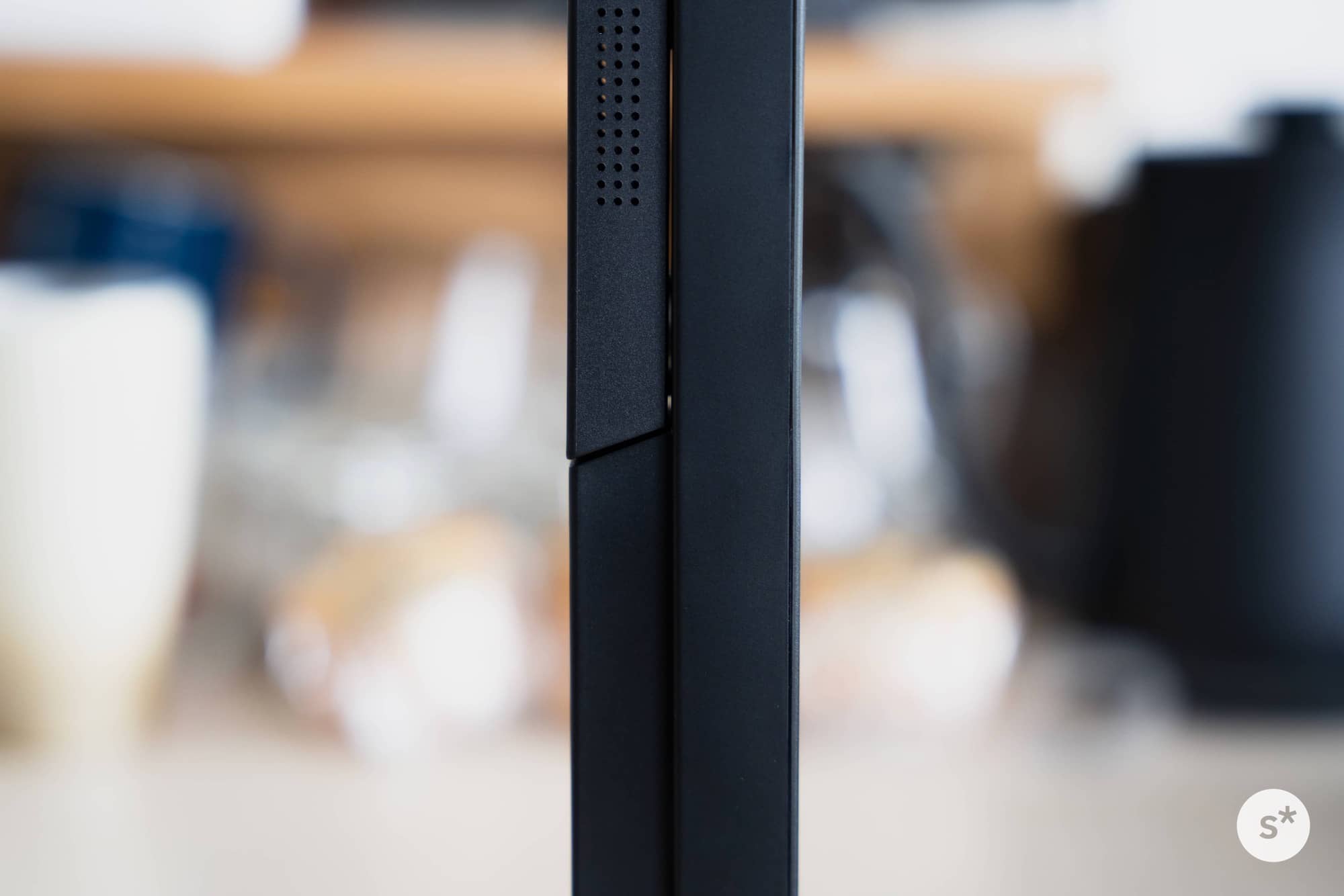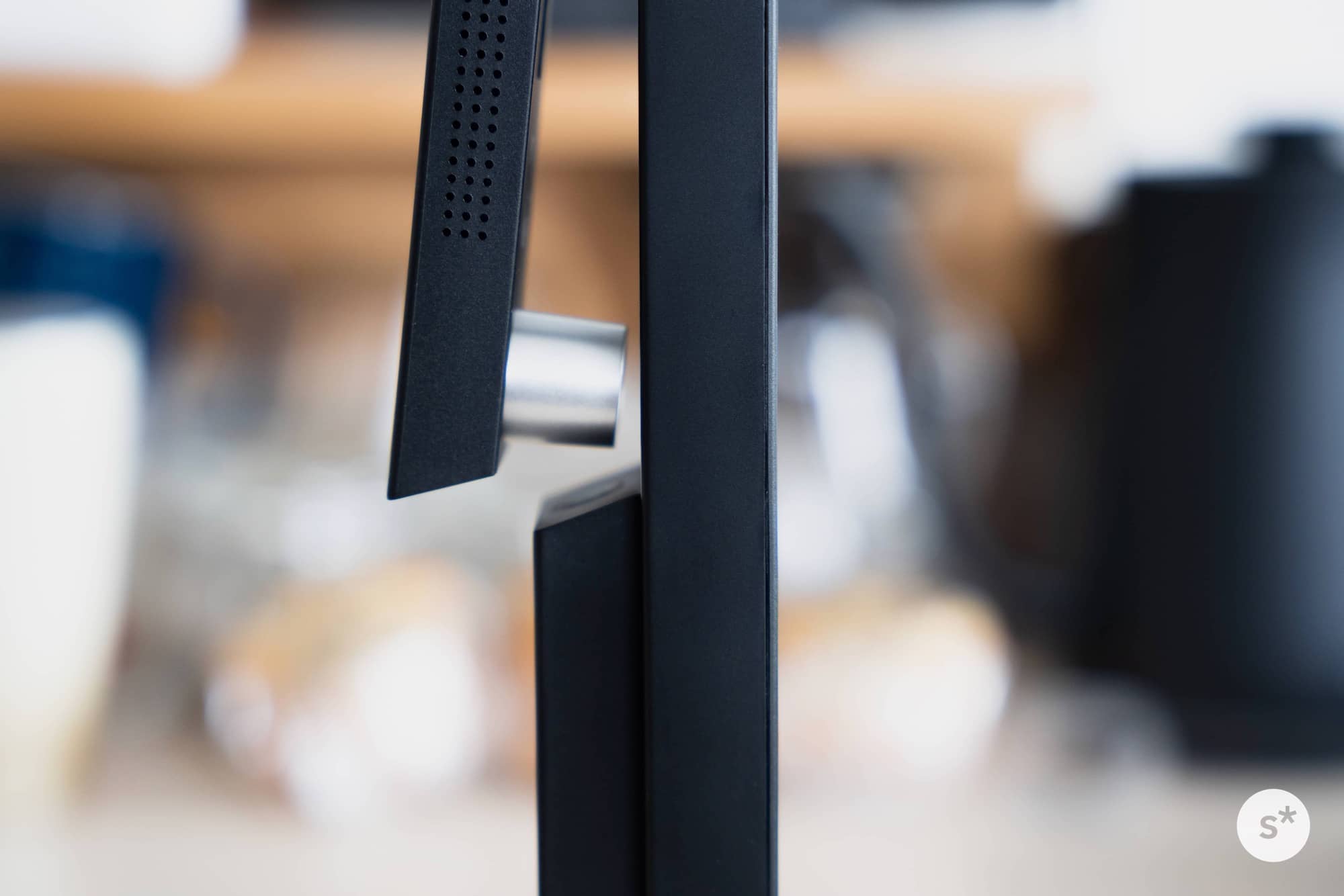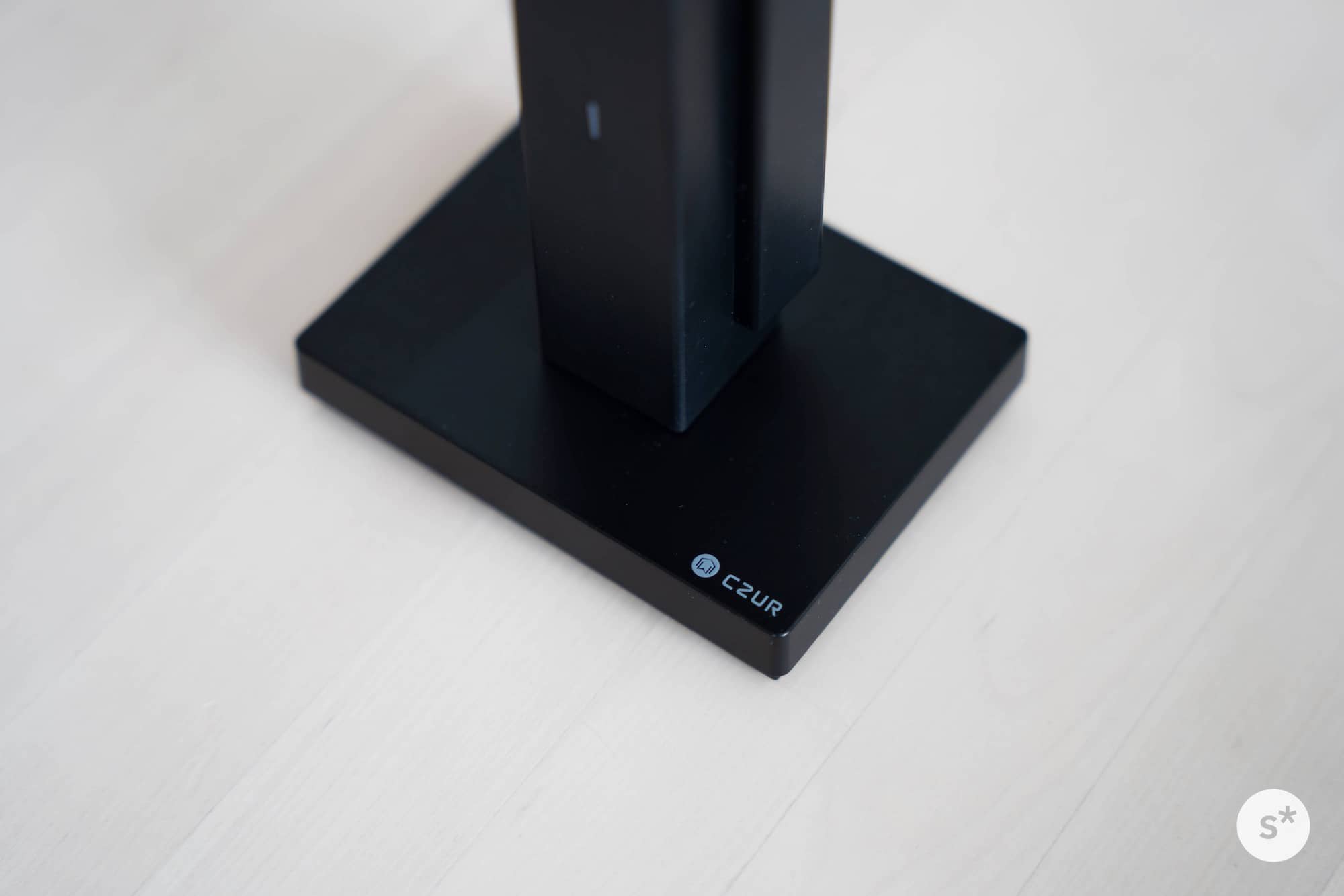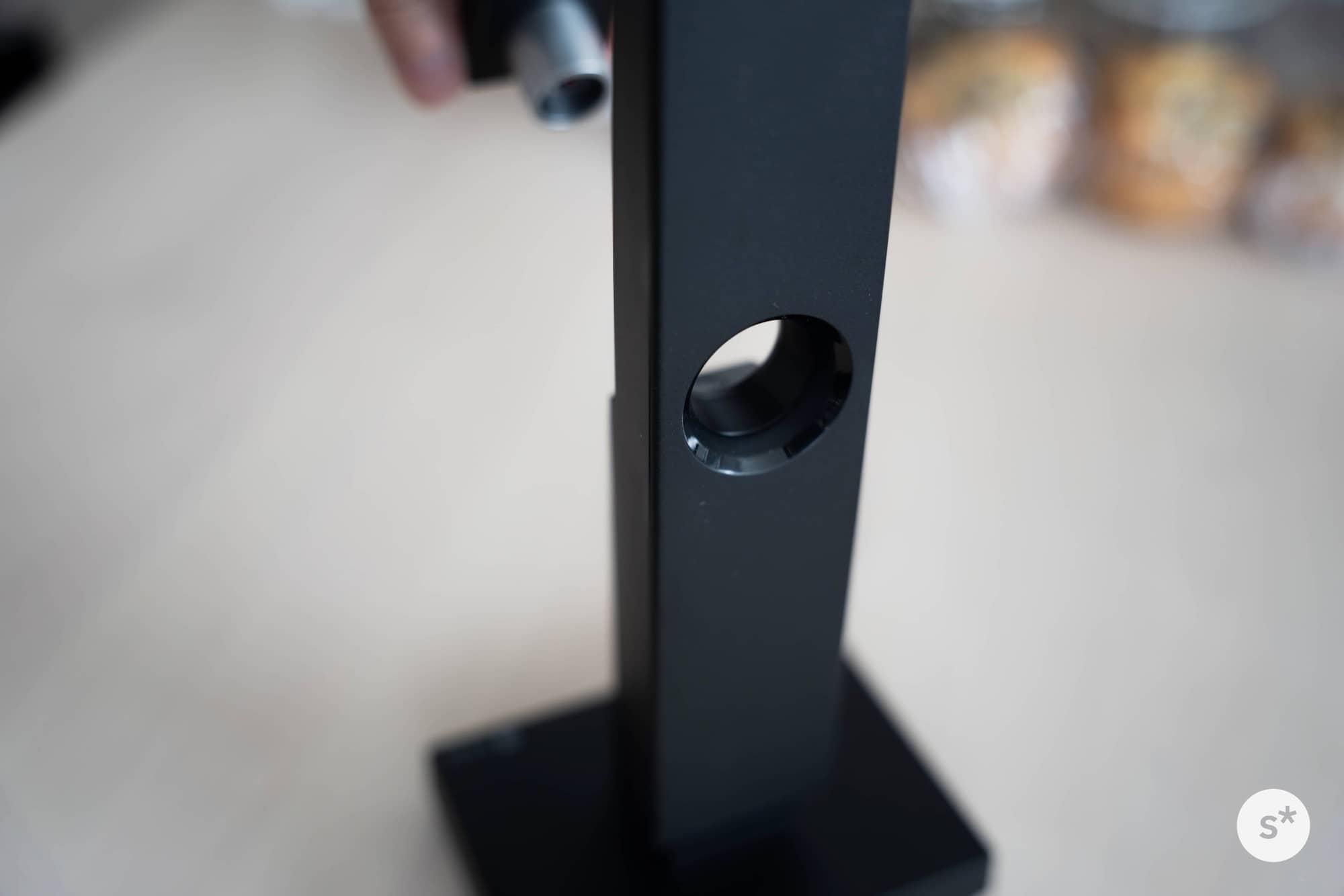 それから、スクエアな台座。柱が180°回転することをアピールするために円形に落ち着きそうな気がしますが、あえてのスクエア。全体を通して曲線を使わず、直線だけで構成されたプロダクトデザイン。美しすぎます。