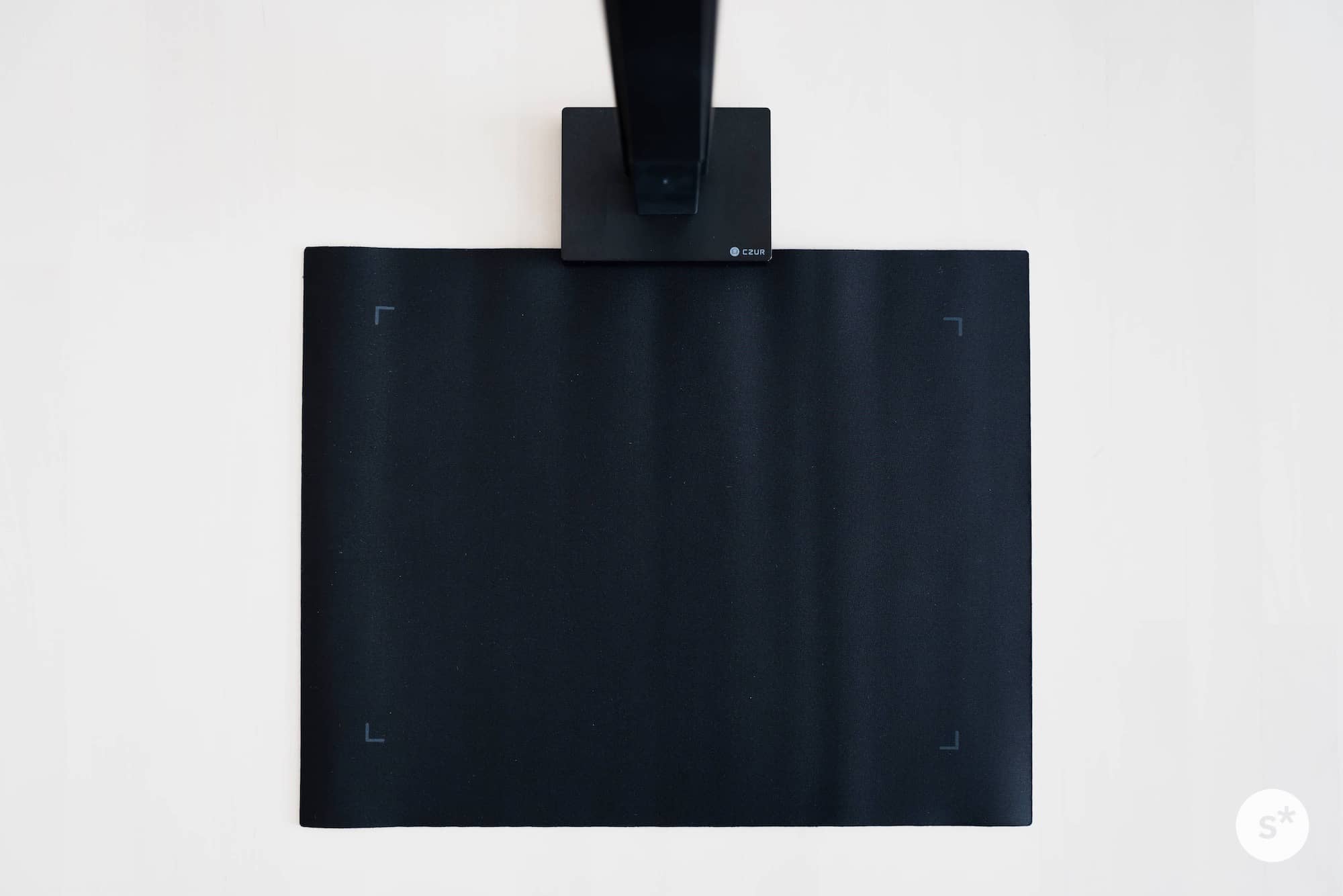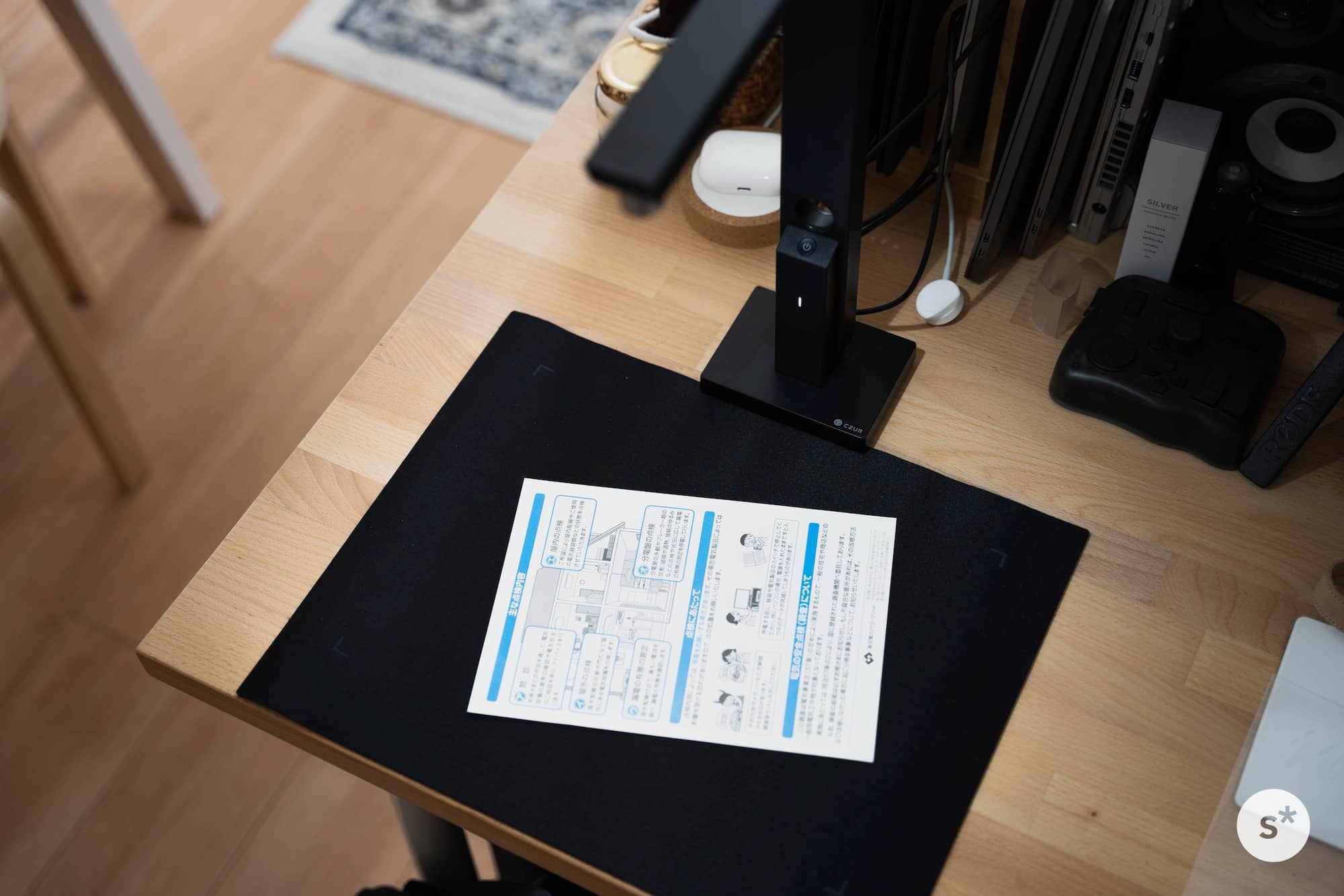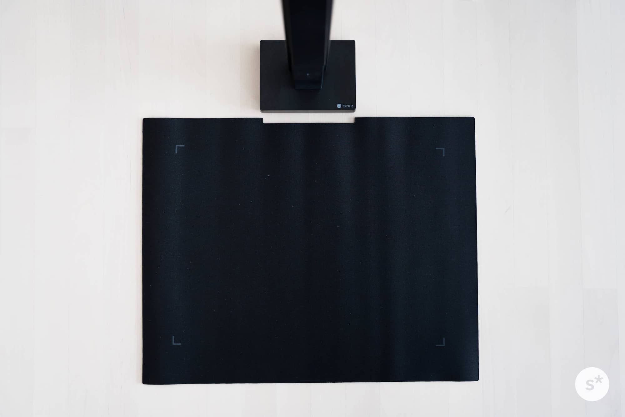 CZUR Lens Proには黒いドキュメントマットが付属しています。凹んでいる部分に本体の底面をセットするだけで位置合わせができ、とても簡単にセットアップすることができます。