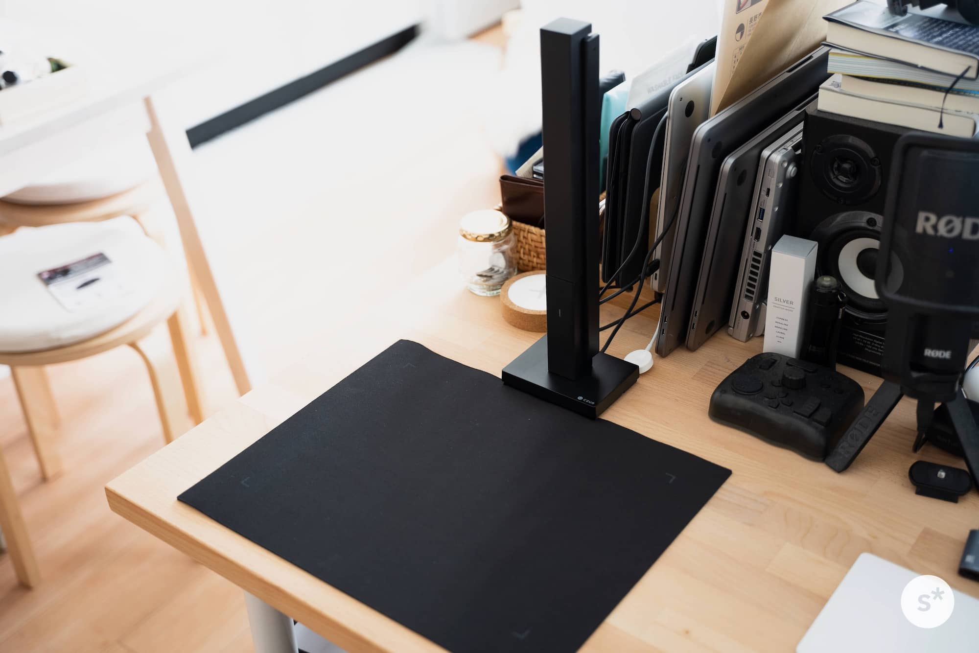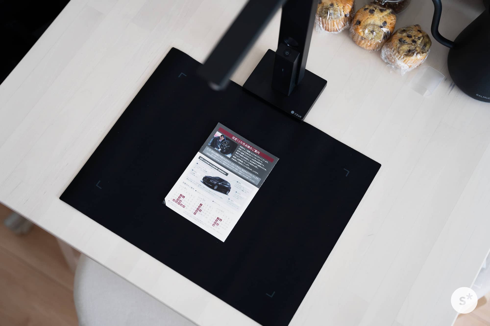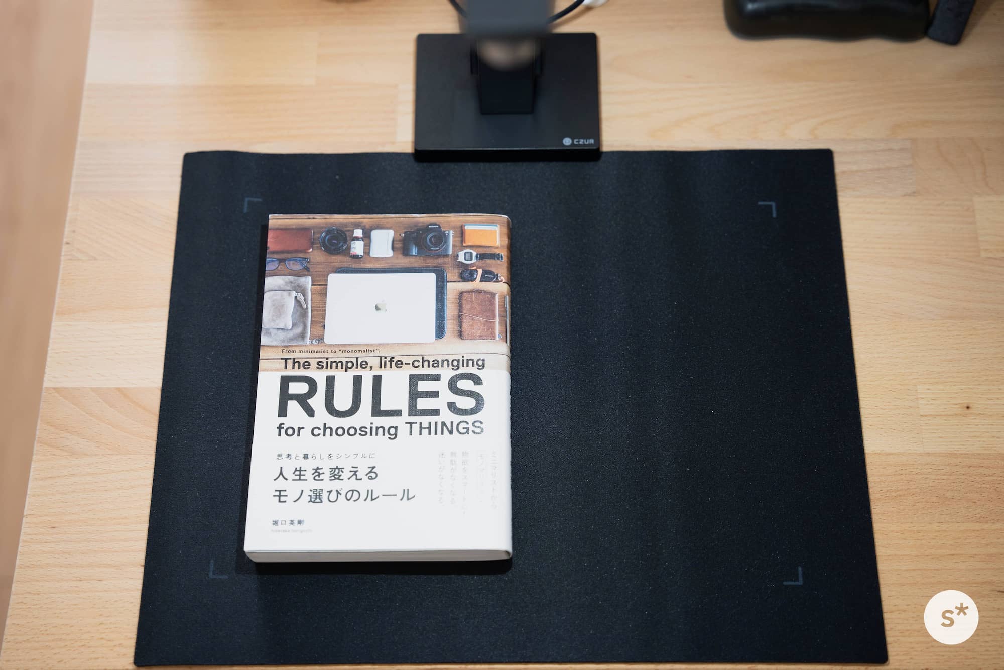 CZUR Lens Proには黒いドキュメントマットが付属しています。凹んでいる部分に本体の底面をセットするだけで位置合わせができ、とても簡単にセットアップすることができます。