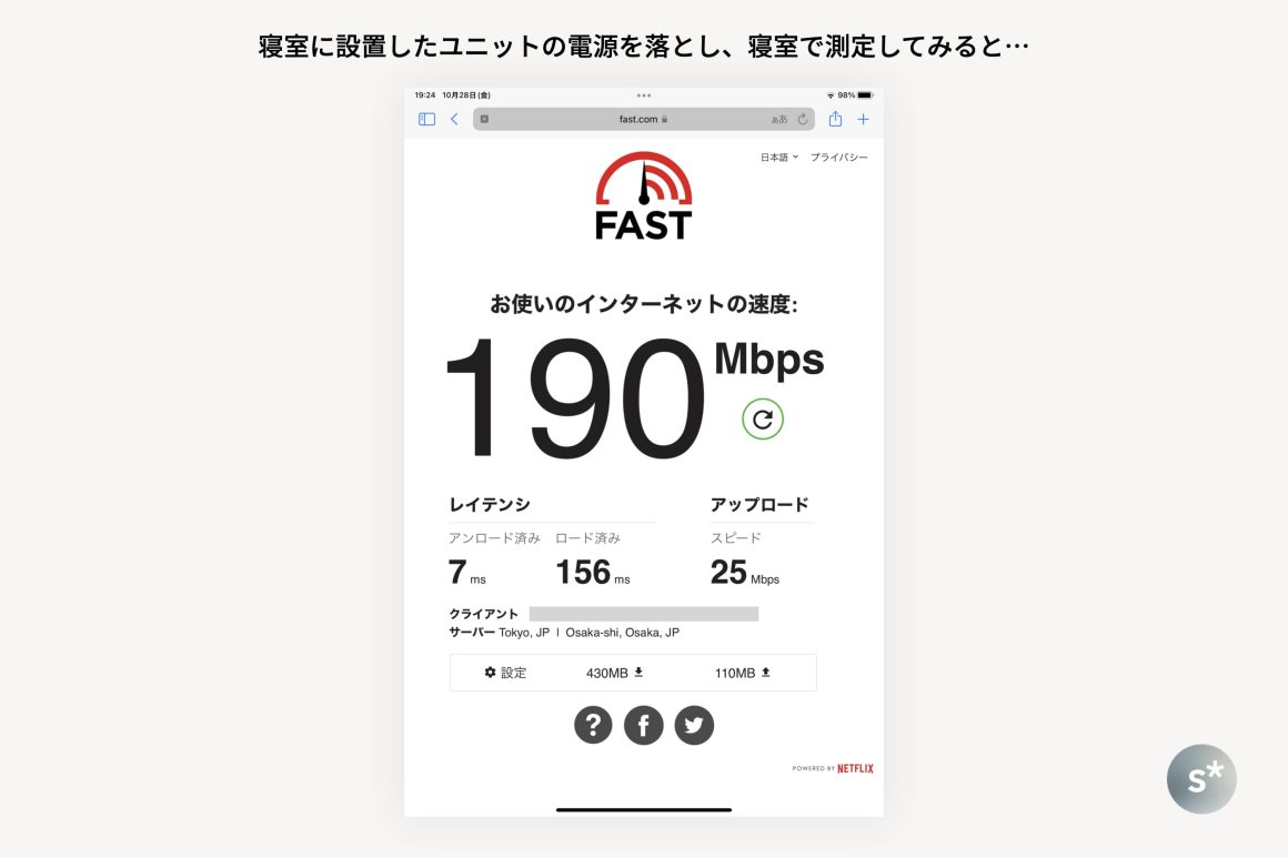 ここまで設定してきましたが、70平米のマンションでも効果があったのか。各クライアントでのスピードテストの結果を載せて締めくくります。