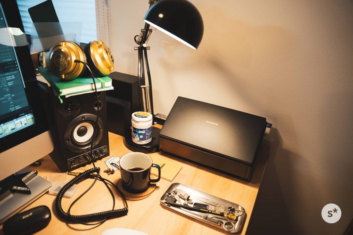 僕はミニマリストとは対極にいて、「少しごちゃっとモノが詰まっているけれど、それでいて整然と並べられている環境」が好きです。なので、デスク周りも自ずとそんな配置になっています。