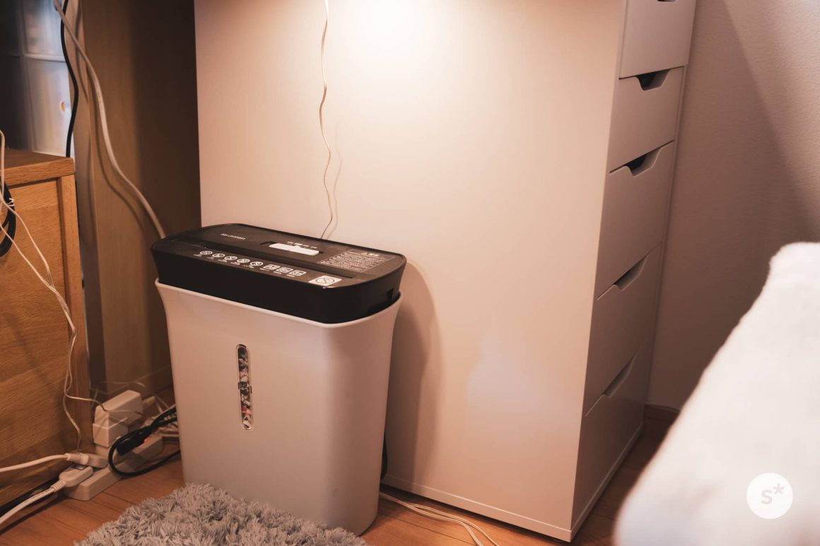 個人情報のある書類をそのまま捨てるのがなんとなく嫌で、シュレッダーにかけることにしています。アイリスオーヤマの3000円くらいのやつです。