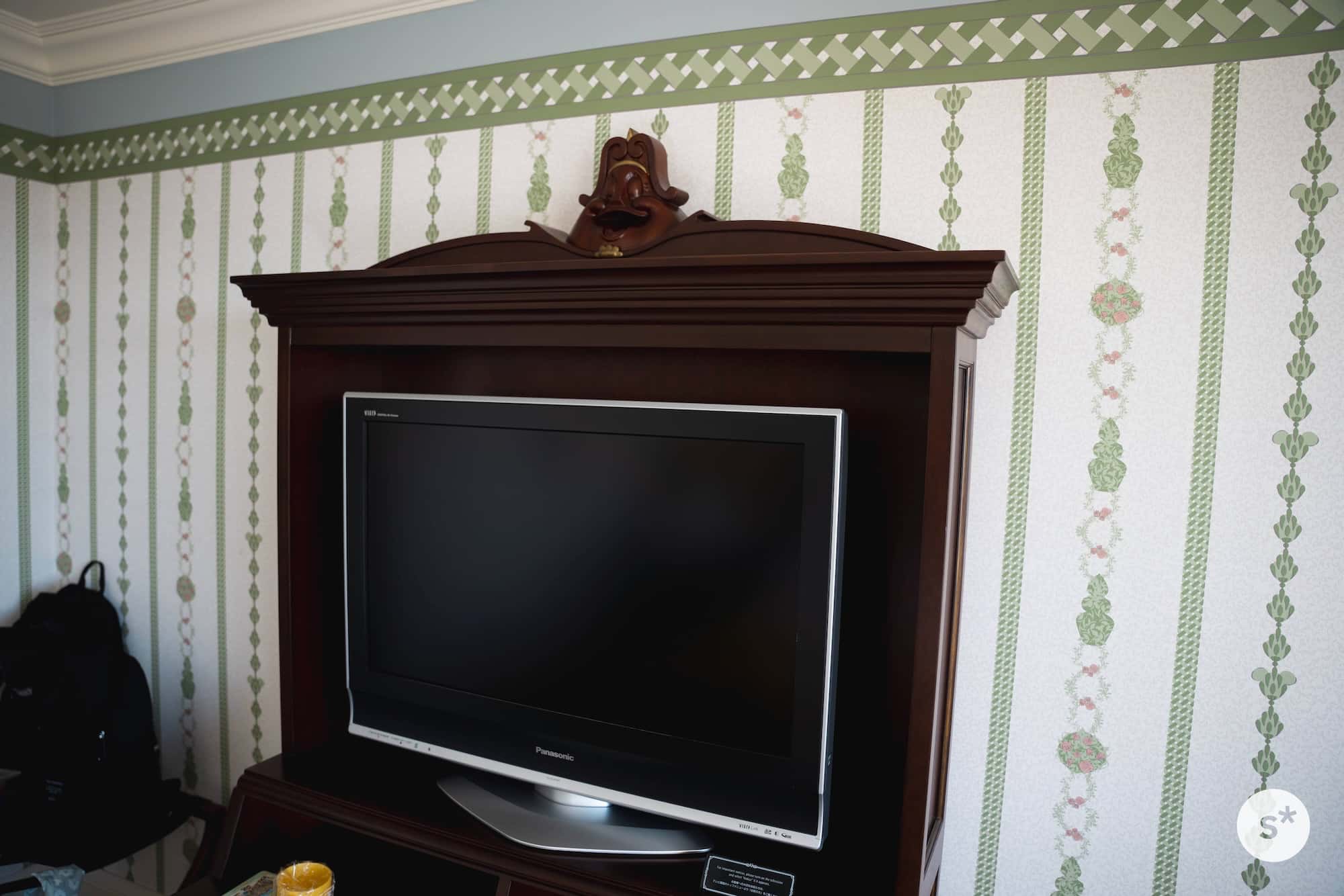 テレビ台の上にはドナルドダッグがいたり、壁紙の柄がミッキーマウスだったりと、何かと芸が細かいのです。