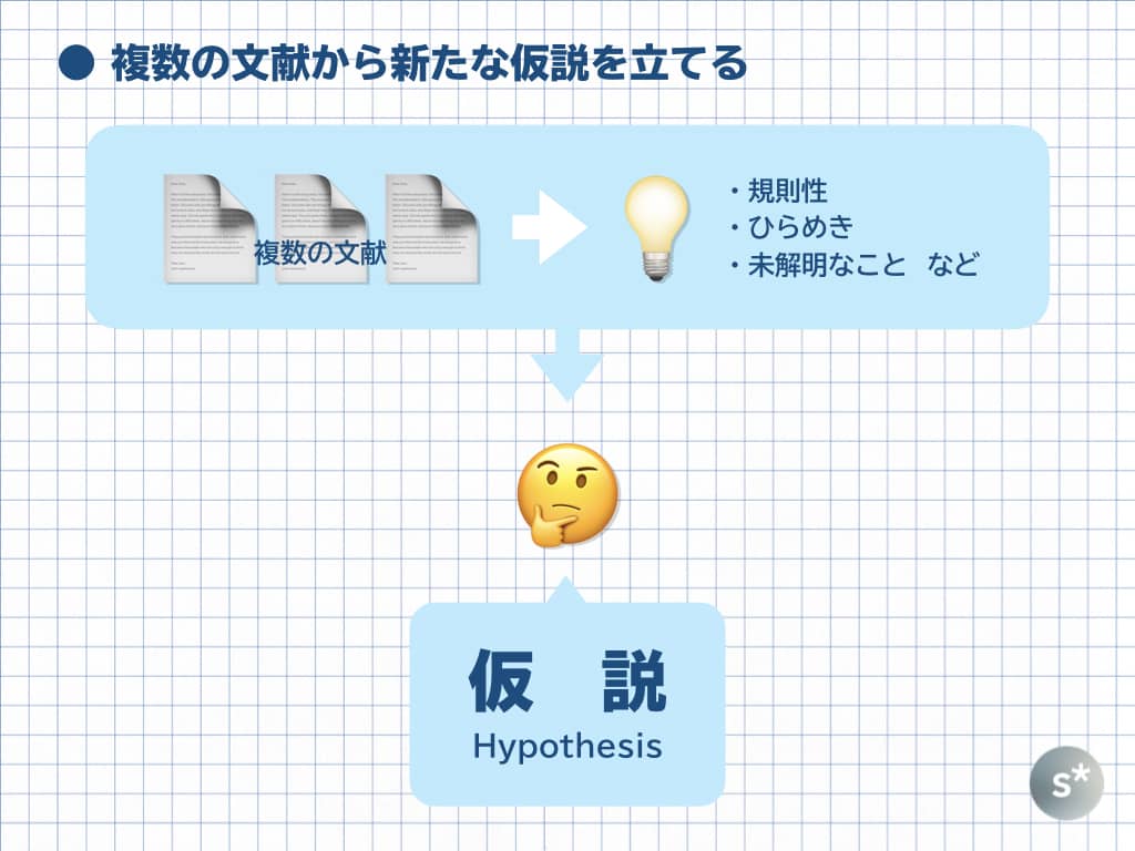 このように、複数の文献を参考にして新たな仮説を導き出すのです。参考にする文献を組み合わせるセンスだったり、咄嗟のひらめきだったり、個人の才能が重要になります。
