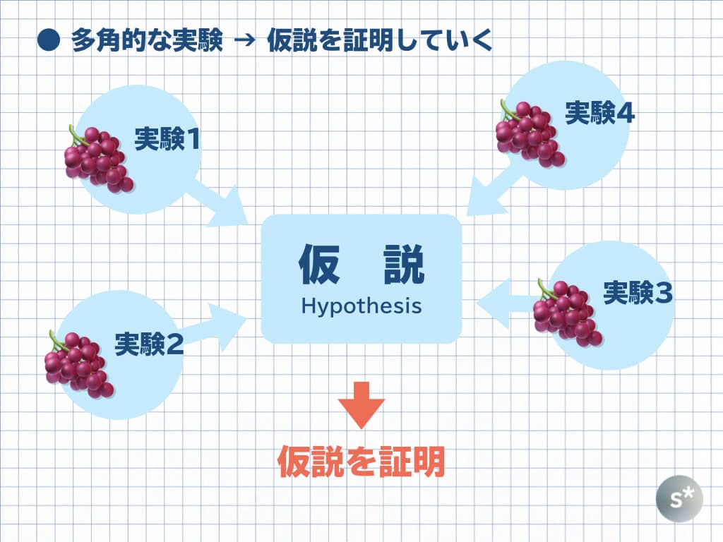 次のステップでは、これを科学的に検証していきます。ひとつの視点ではなく、さまざまな角度からエビデンス(証拠)を積み上げることが重要です。