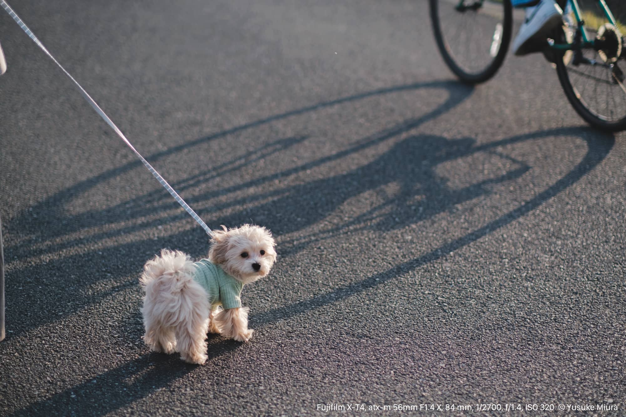 最初は人通りの少ない静かな道を選んで歩いていたけれど、徐々に慣れさせながら大通り沿いとか人通りの多い路地とかにも積極的に連れて行きました。当初は大きな音を怖がっていましたが、今では普通に歩いてくれるから、きっともう慣れてくれているのでしょう。